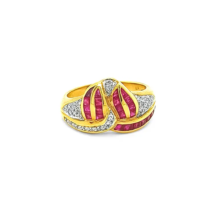Золотое кольцо с рубинами и бриллиантами