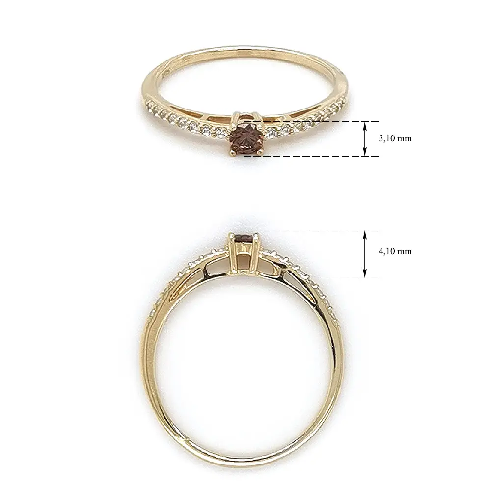 Золотое кольцо с захнедой и цирконием