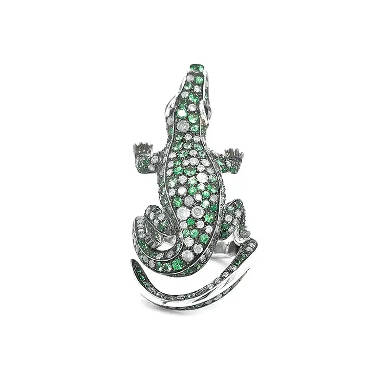 Золотое кольцо с зелеными гранатами и бриллиантами