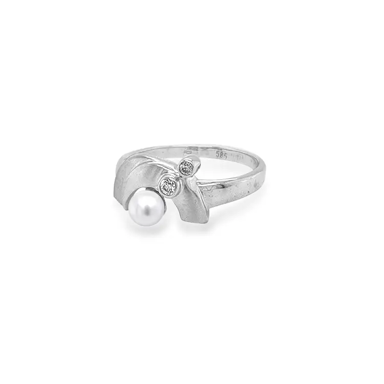 Золотое кольцо с жемчугом и цирконами
