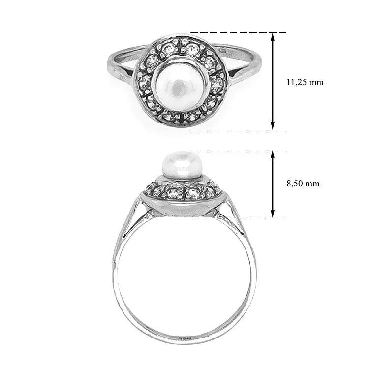 Золотое кольцо с жемчугом и цирконами