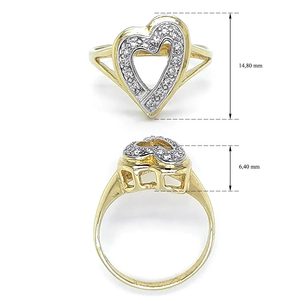 Золотое кольцо Сердце с цирконами
