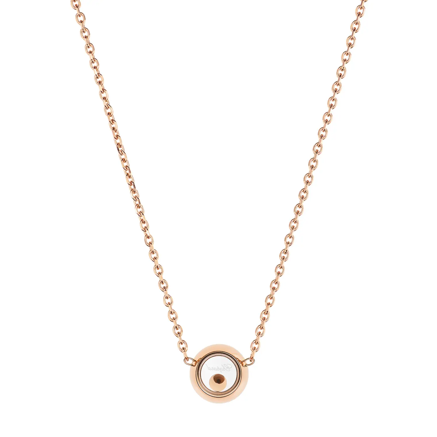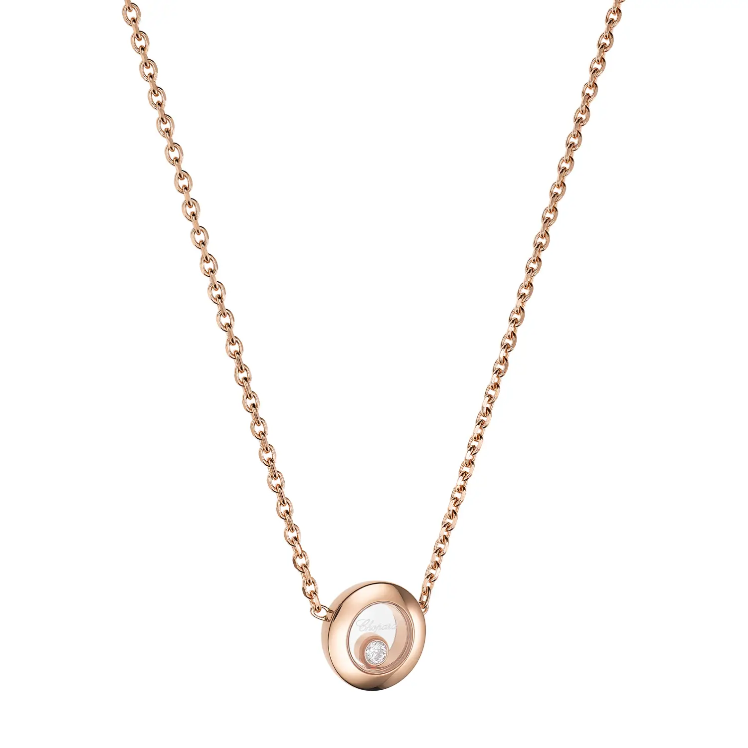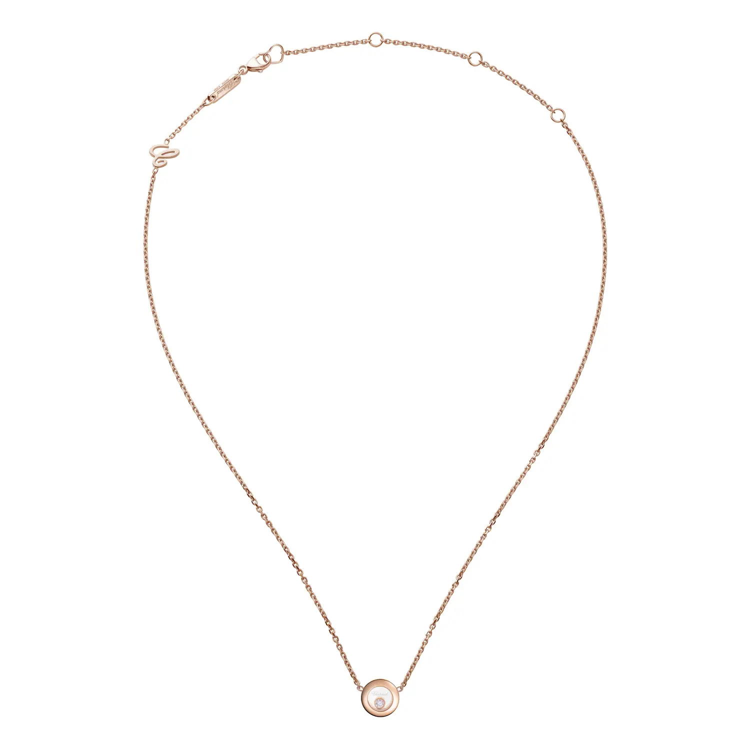 Это элегантное ожерелье из коллекции Happy Diamonds Icons является олицетворением радости, свободы и вечной женственности. Изготовлено из 18-каратного розового золота и украшено свободно движущимся бриллиантом между двумя сапфировыми стёклами, создающим завораживающую игру света при каждом движении. Этот культовый элемент Chopard символизирует лёгкость и гармонию в изысканной форме.