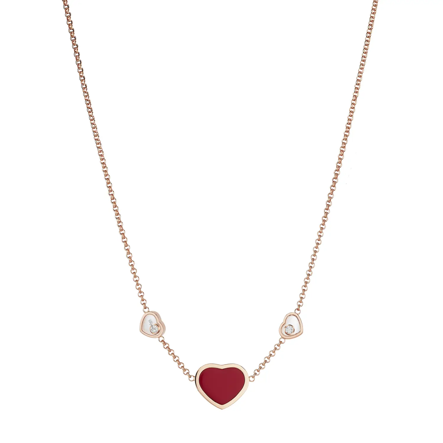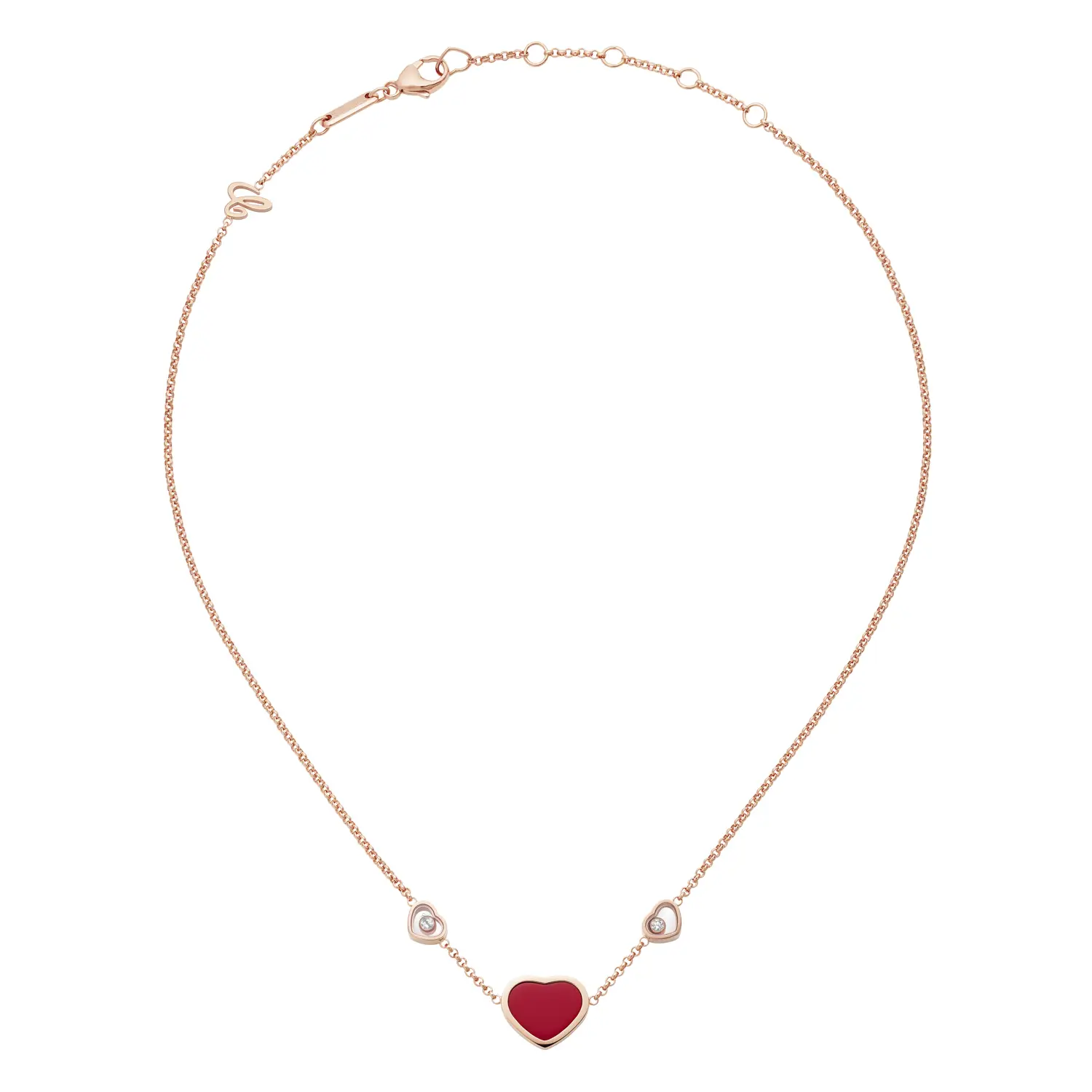 Это великолепное ожерелье из коллекции Happy Hearts олицетворяет женственность, радость и элегантность. Изготовлено из 18-каратного розового золота и украшено иконой сердца с красным камнем и сияющим бриллиантом, создавая гармоничное сочетание роскоши и живости. Контраст между тёплым золотом и насыщенным красным цветом придаёт украшению особую выразительность.