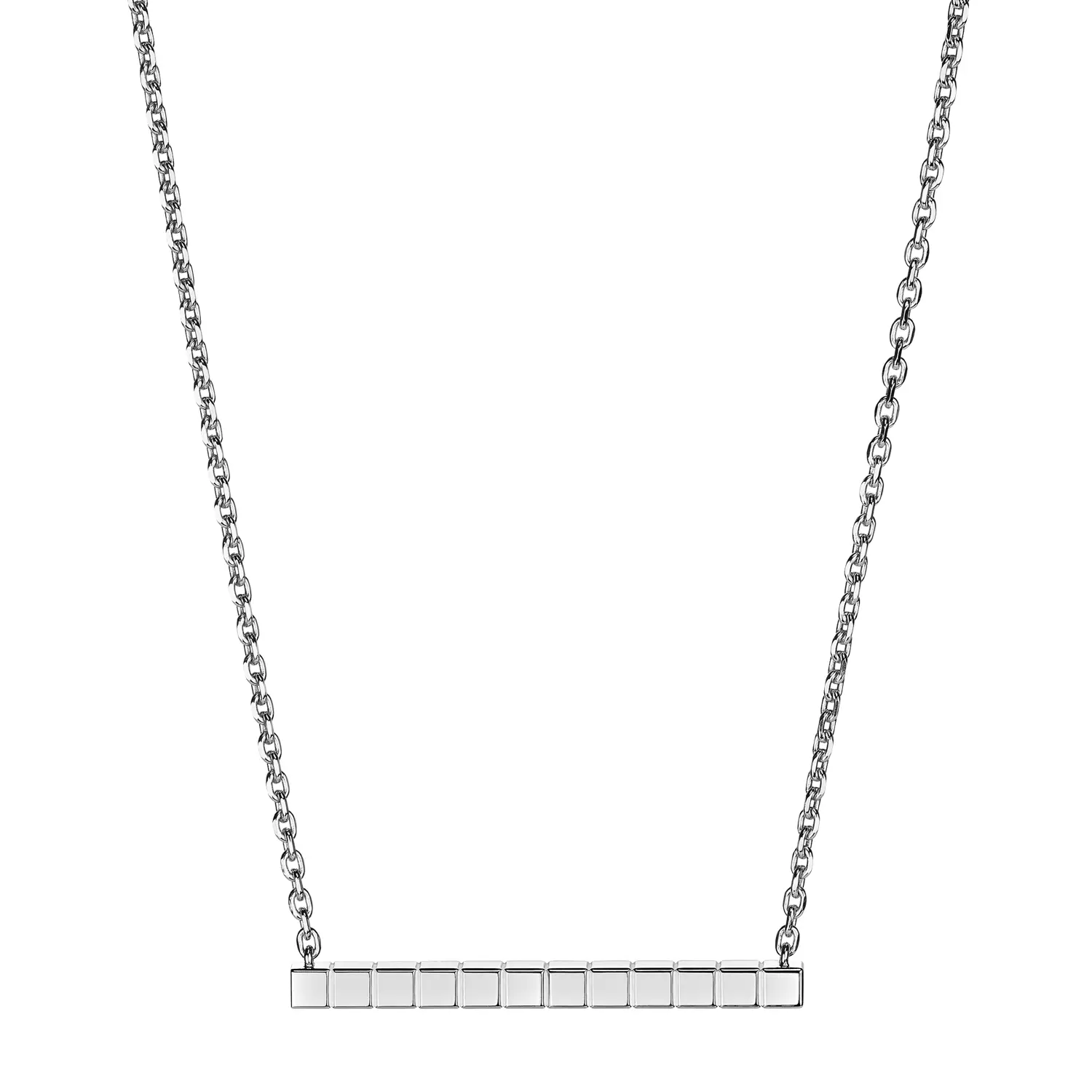 Это элегантное ожерелье из коллекции Ice Cube представляет собой современное воплощение роскоши, основанное на чистоте форм и ювелирном мастерстве. Изготовлено из 18-каратного белого золота и украшено бриллиантами общим весом около 0,06 карата, его минималистичный геометрический дизайн вдохновлён формой ледяного кубика. Каждая грань отражает свет, создавая тонкое и изысканное сияние.