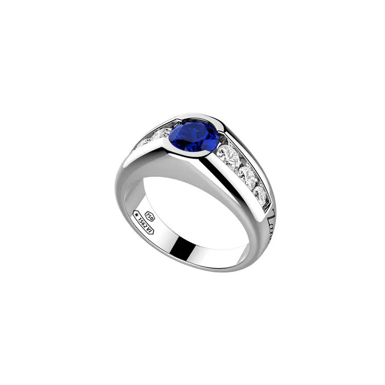 Золотое мужское кольцо Zancan с сапфиром сочетает современный итальянский дизайн с чистой, мужественной эстетикой. Выполнено из белого золота 18 карат (750/1000) с полированной поверхностью; силуэт с боковыми камнями выглядит сбалансировано и элегантно — смелый акцент и для повседневных, и для формальных образов.