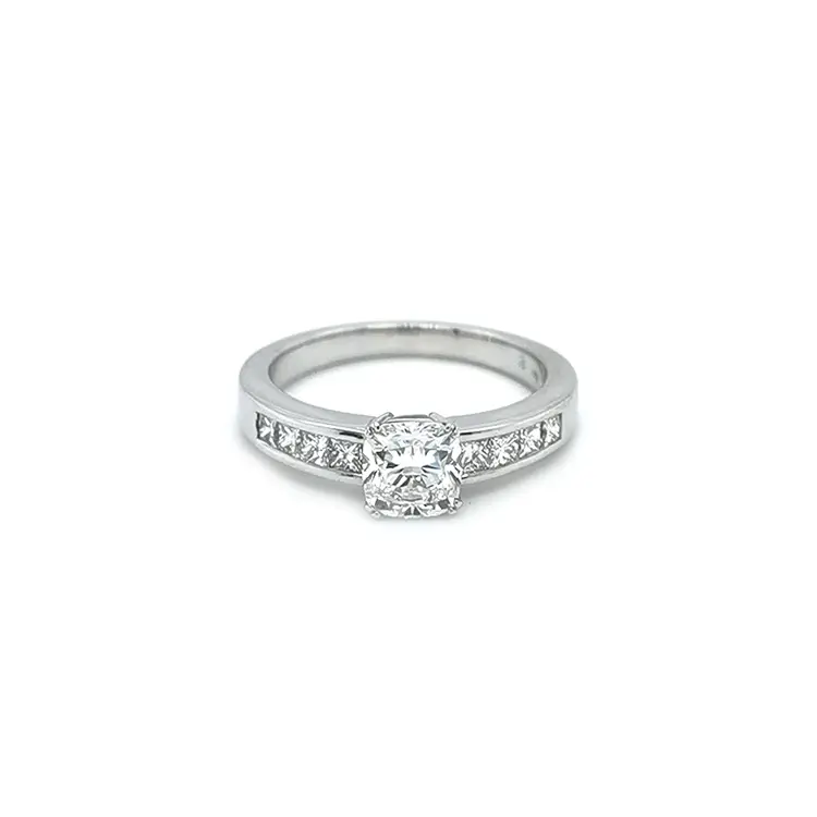 Его дополняют 8 природных бриллиантов Princess, размером 2,45 mm, общим весом 0,41 ct, цвет G, чистота VS, что придаёт перстню современный архитектурный акцент.