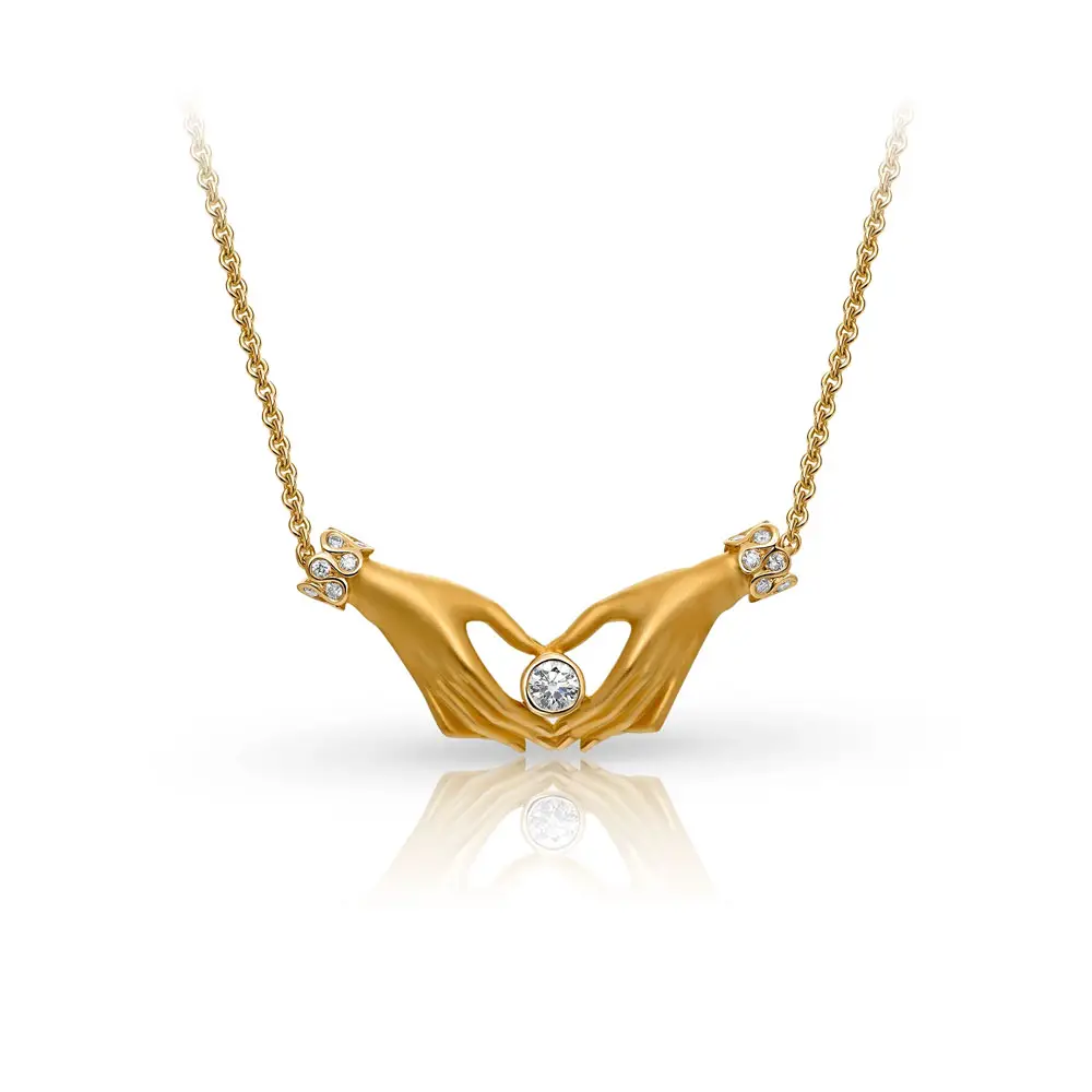 В центре композиции — 13 природных белых бриллиантов круглой огранки (Round), общей массой 0,28 карата, цвета G и чистоты VS. Их сияние олицетворяет чистоту, вечную красоту и утонченность, создавая безупречный контраст с теплым оттенком золота.