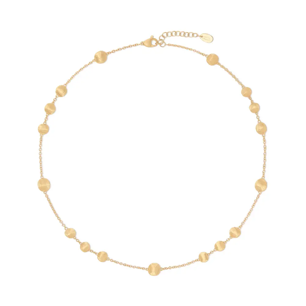 Колье Marco Bicego Africa CB2830 Y воплощает итальянскую элегантность и мастерство ювелирного искусства. Изготовлено из жёлтого золота 18 карат (750/1000) с сочетанием глянцевой и матовой отделки, что придаёт ему изысканную текстуру и естественный блеск. Длина 42 см делает его идеальным украшением как для повседневного ношения, так и для особых случаев.