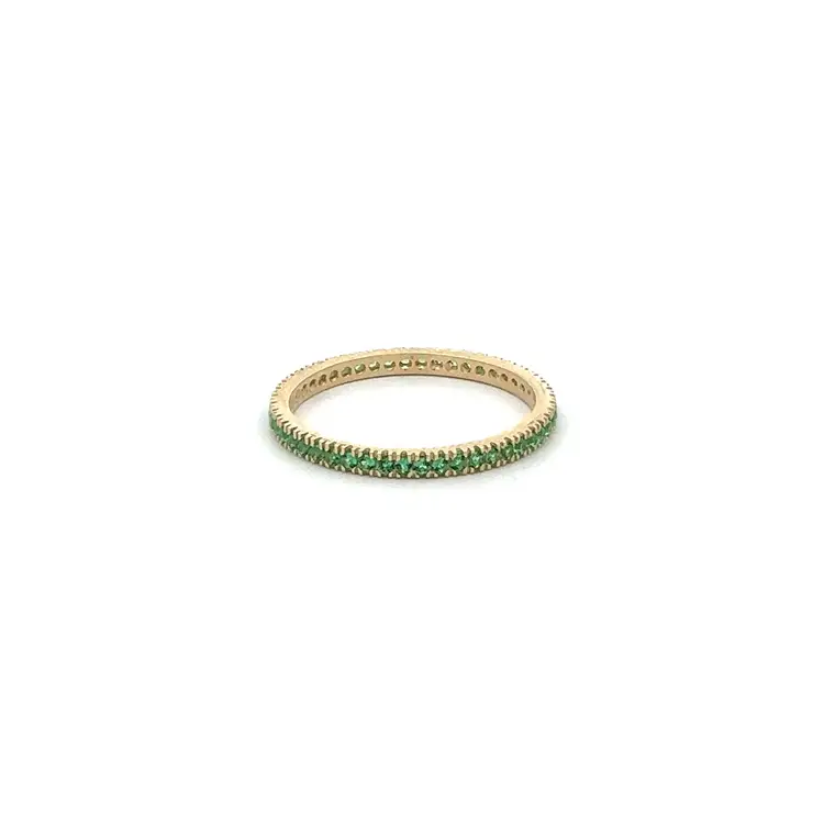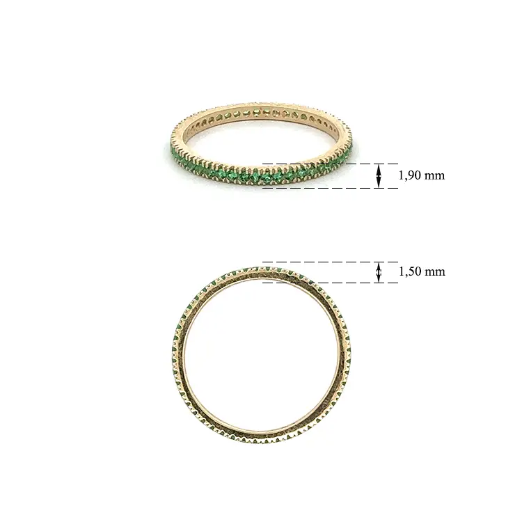 Золотое вечное кольцо с зелеными камнями