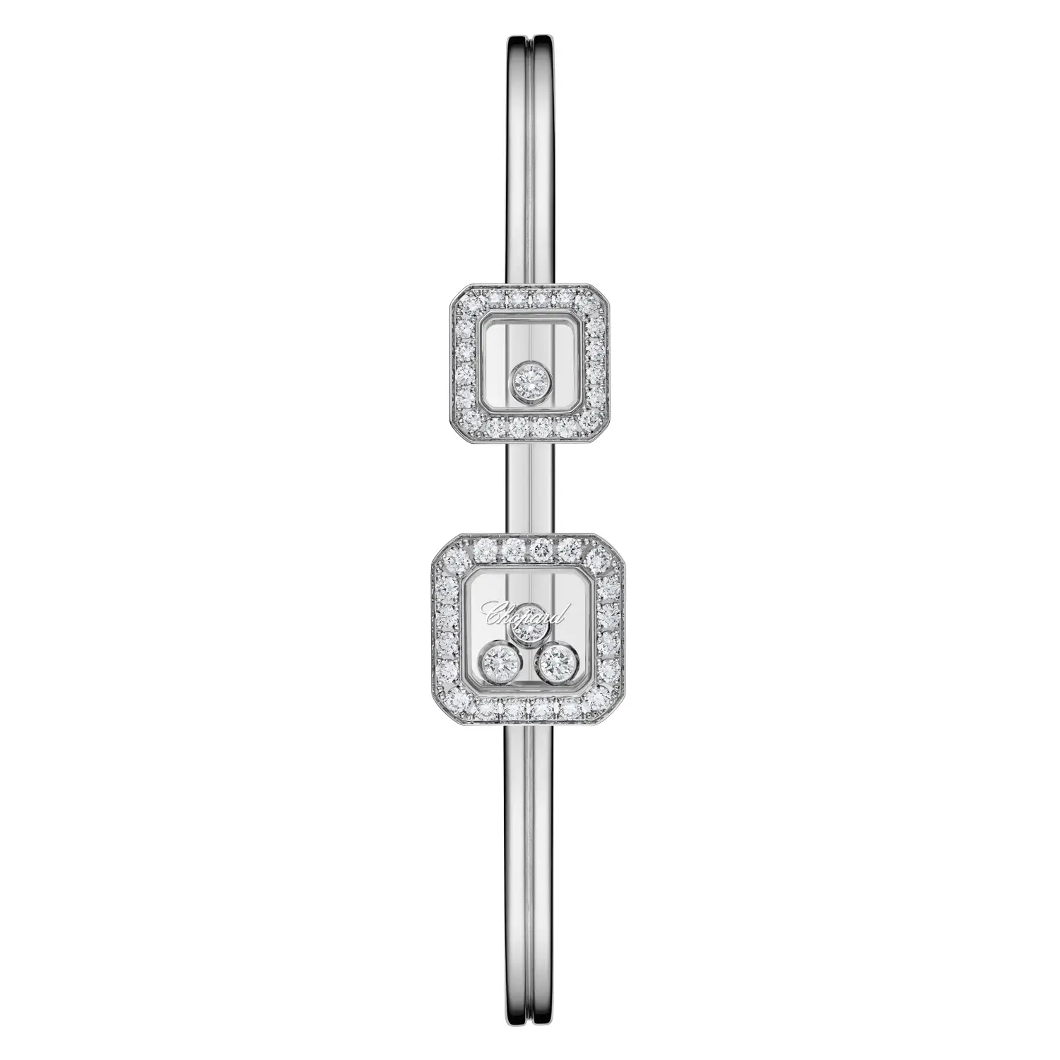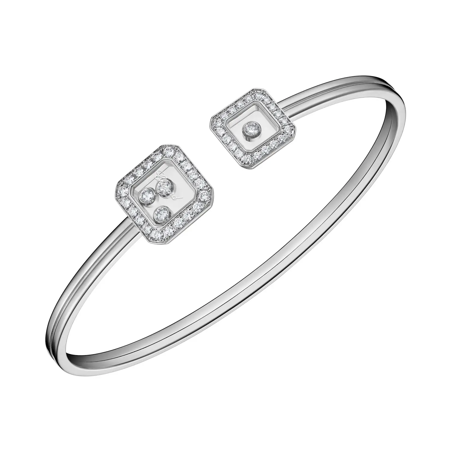 Этот браслет воплощает роскошный и игривый дух Chopard — бриллианты элегантно “танцуют” внутри изделия, создавая ощущение живости и сияния. Минималистичный, но выразительный дизайн делает его идеальным выбором как для торжественных событий, так и для утончённого повседневного образа.