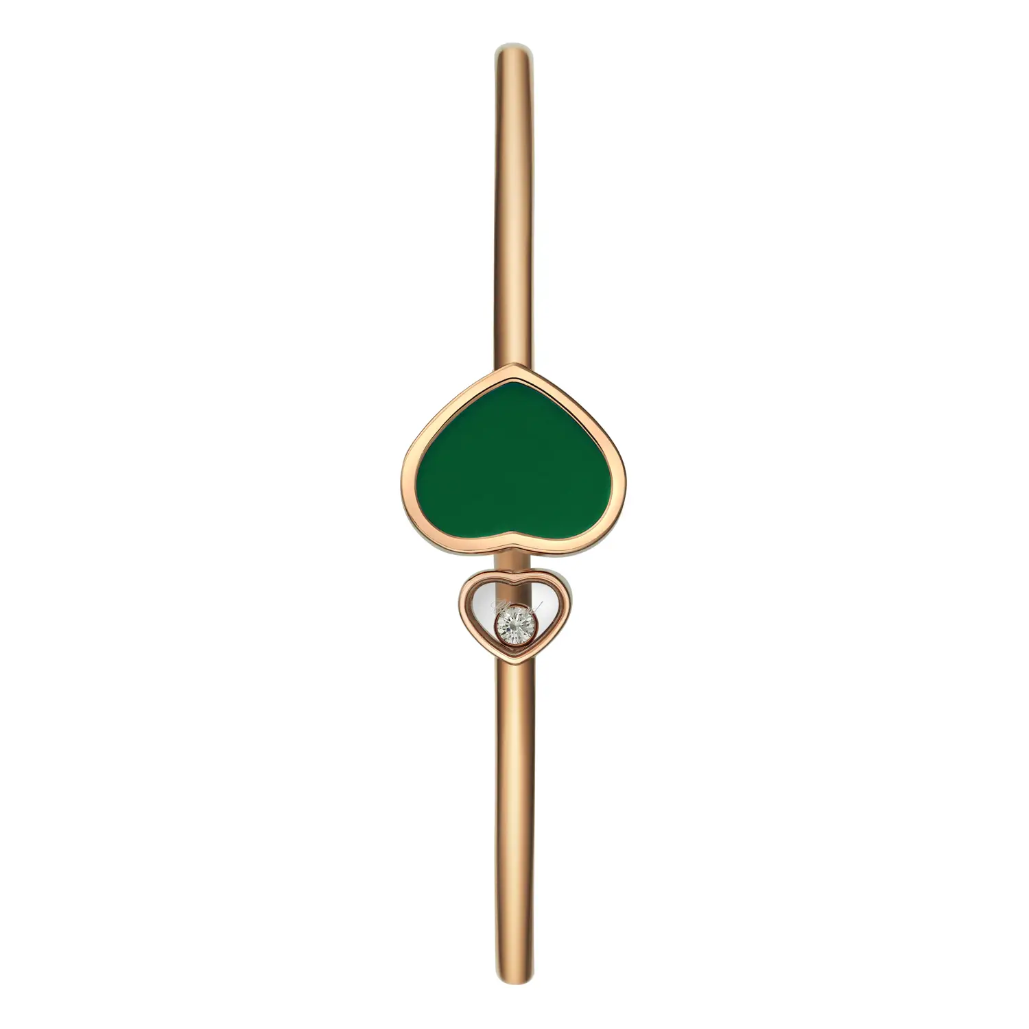 Этот элегантный браслет из коллекции Happy Hearts символизирует любовь, радость и женственность. Изготовлен из 18-каратного розового золота, украшен двумя сердцами – одно инкрустировано ониксом, а другое содержит свободно движущийся бриллиант, создающий эффект танца света. Этот культовый дизайн Chopard излучает позитивную энергию и вечную элегантность.
