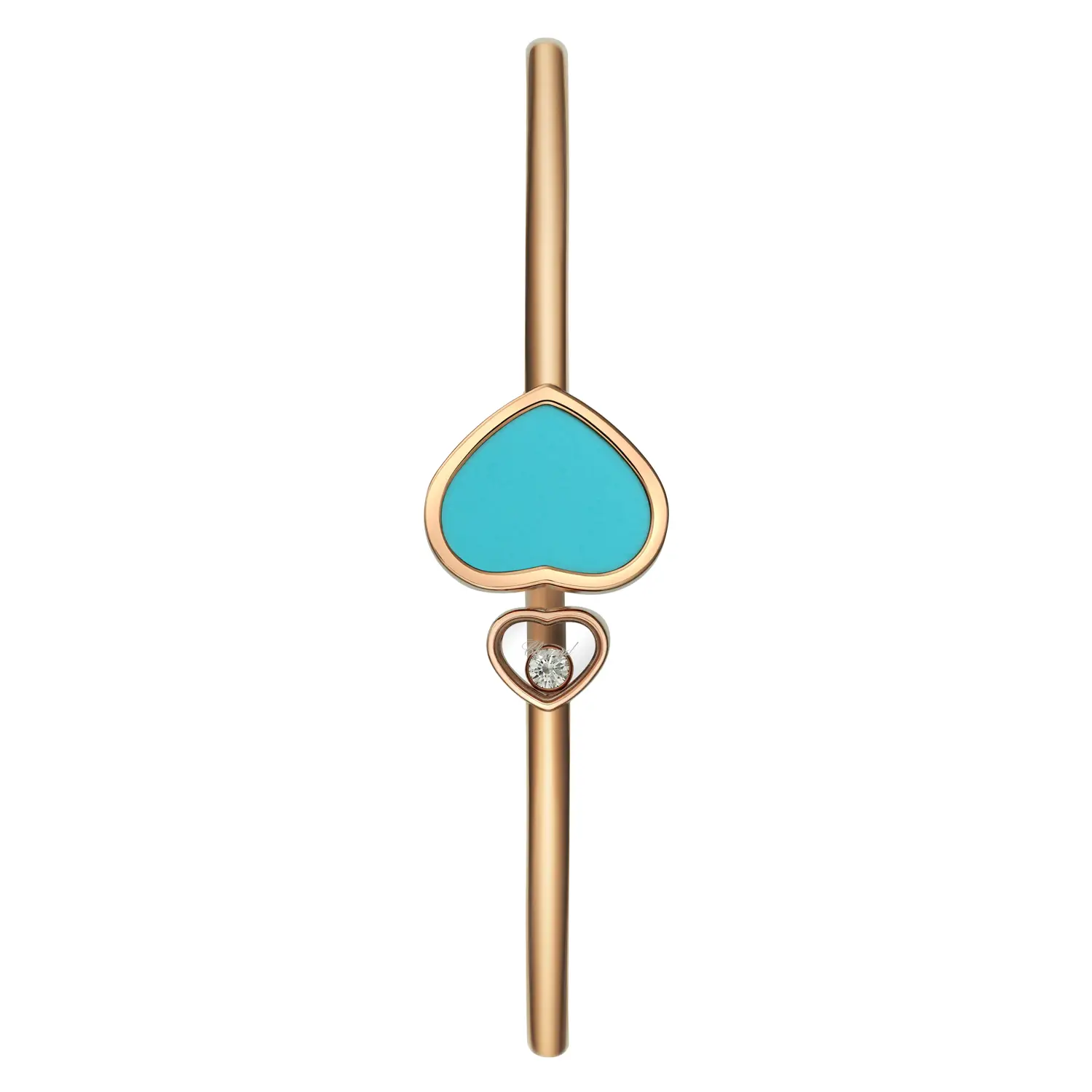 Этот изысканный браслет из коллекции Happy Hearts излучает радость, женственность и оптимизм, присущие духу Chopard. Изготовлен из 18-каратного розового золота, украшен сердцем из бирюзы и свободно движущимся бриллиантом весом около 0,05 карата, сочетая игривость и утончённость. Яркий бирюзовый оттенок придаёт украшению современный и освежающий вид.