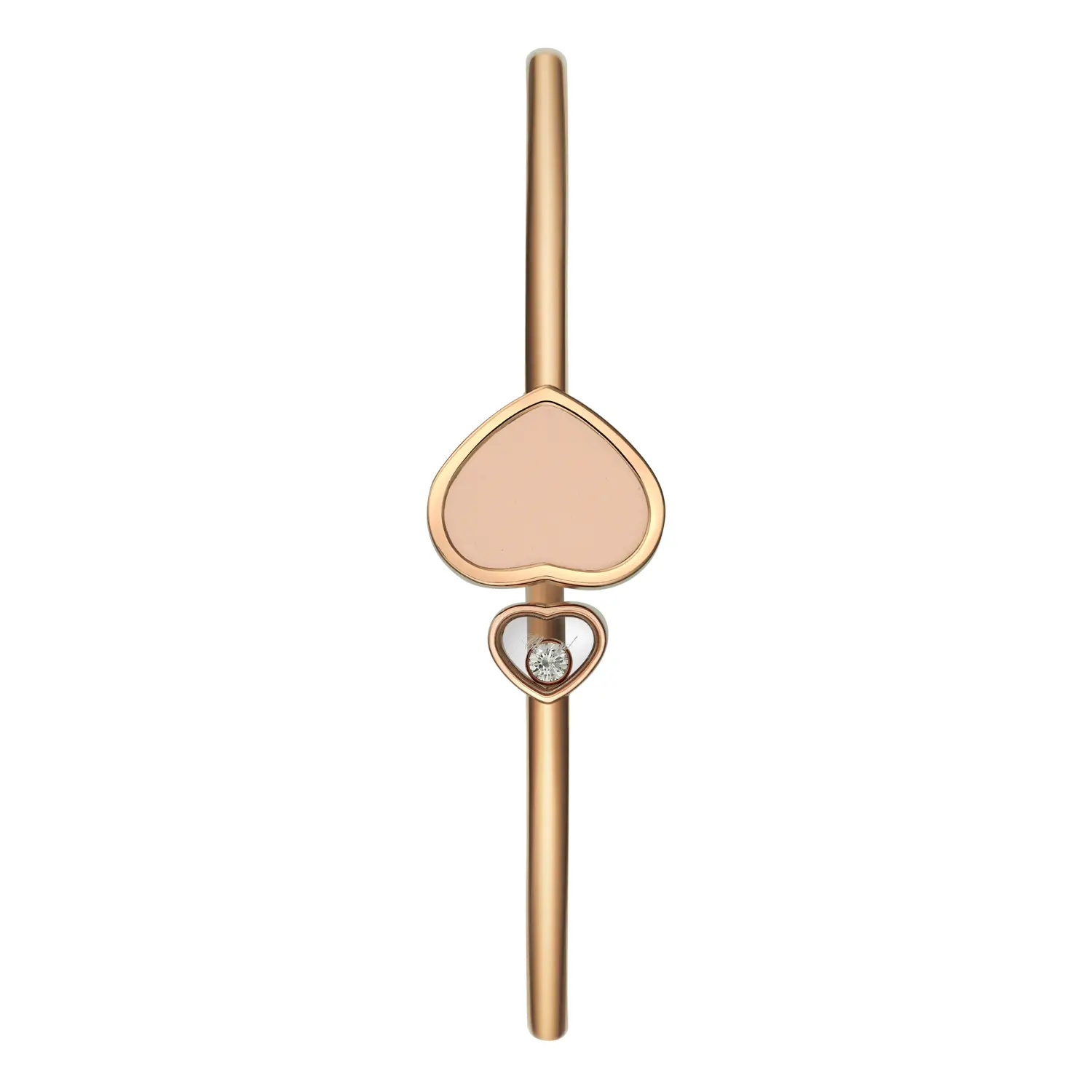 Этот очаровательный браслет из коллекции Happy Hearts сочетает романтичность, нежность и знаковый стиль Chopard. Изготовлен из 18-каратного розового золота, украшен сердцем из розового камня и свободно движущимся бриллиантом весом около 0,05 карата, символизируя женственность и радость жизни. Нежные розовые тона и блеск бриллианта создают украшение, которое сияет при каждом движении.