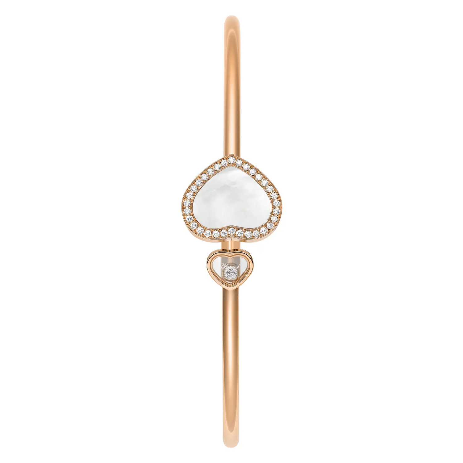 Браслет Chopard Happy Hearts 85A074-5304 сочетает элегантность, женственность и символику сердца — центральный мотив коллекции Happy Hearts. Изготовлен из этичного розового золота 18 карат, украшен сердцем из перламутра и подвижным бриллиантом, который сверкает при каждом движении руки.