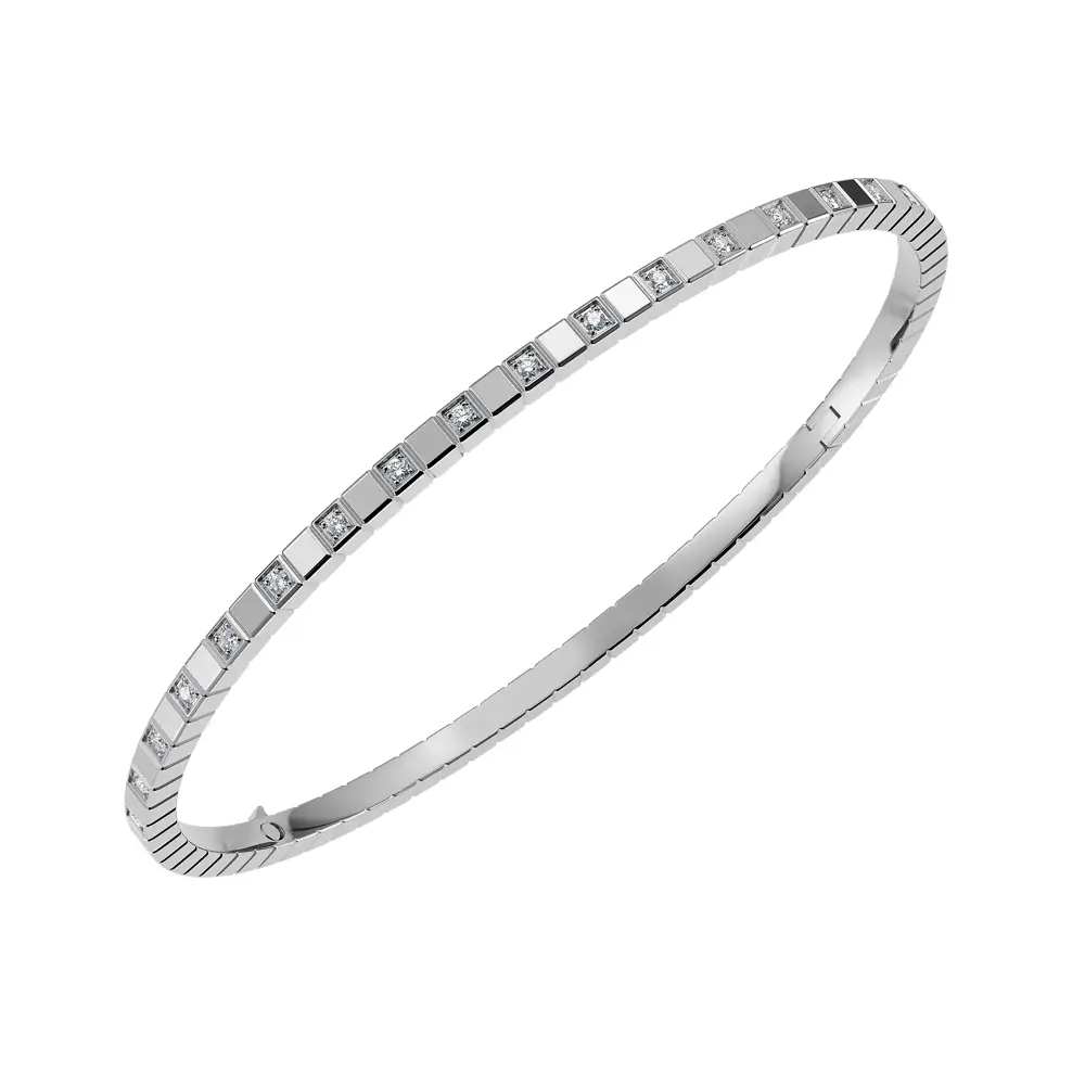 Золотой браслет Chopard Ice Cube 857702-1010 воплощает современную элегантность, вдохновлённую чистыми линиями льда. Это роскошное украшение выполнено из белого золота 18 карат (750/1000) с безупречно полированной поверхностью, придающей ему утончённый и сияющий вид. Длина браслета составляет 17 см, и он относится к категории жёстких браслетов в стиле bangle, что делает его иконным аксессуаром для повседневной носки и торжественных случаев.