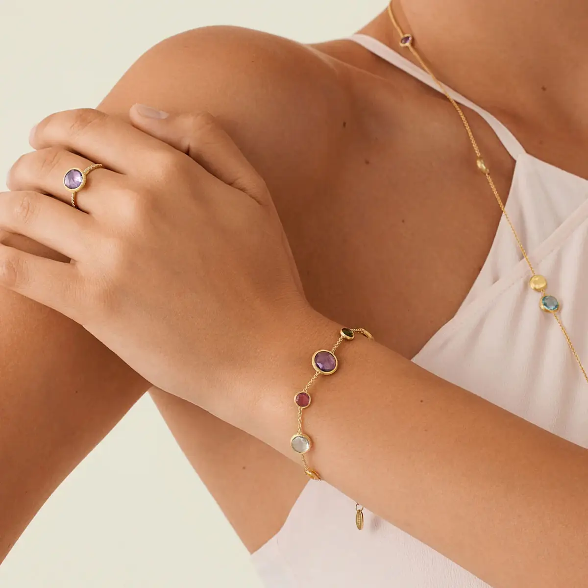 Браслет Marco Bicego Jaipur Colour BB2710 MIX01 Y 02 — это воплощение света, радости и итальянского ювелирного искусства. Изготовлен из жёлтого золота 18 к (750/1000) с поверхностью глянцевой и матовой, сочетающей блеск и утончённую текстуру ручной работы. Регулируемая длина 16–19,5 см обеспечивает идеальную посадку на запястье.