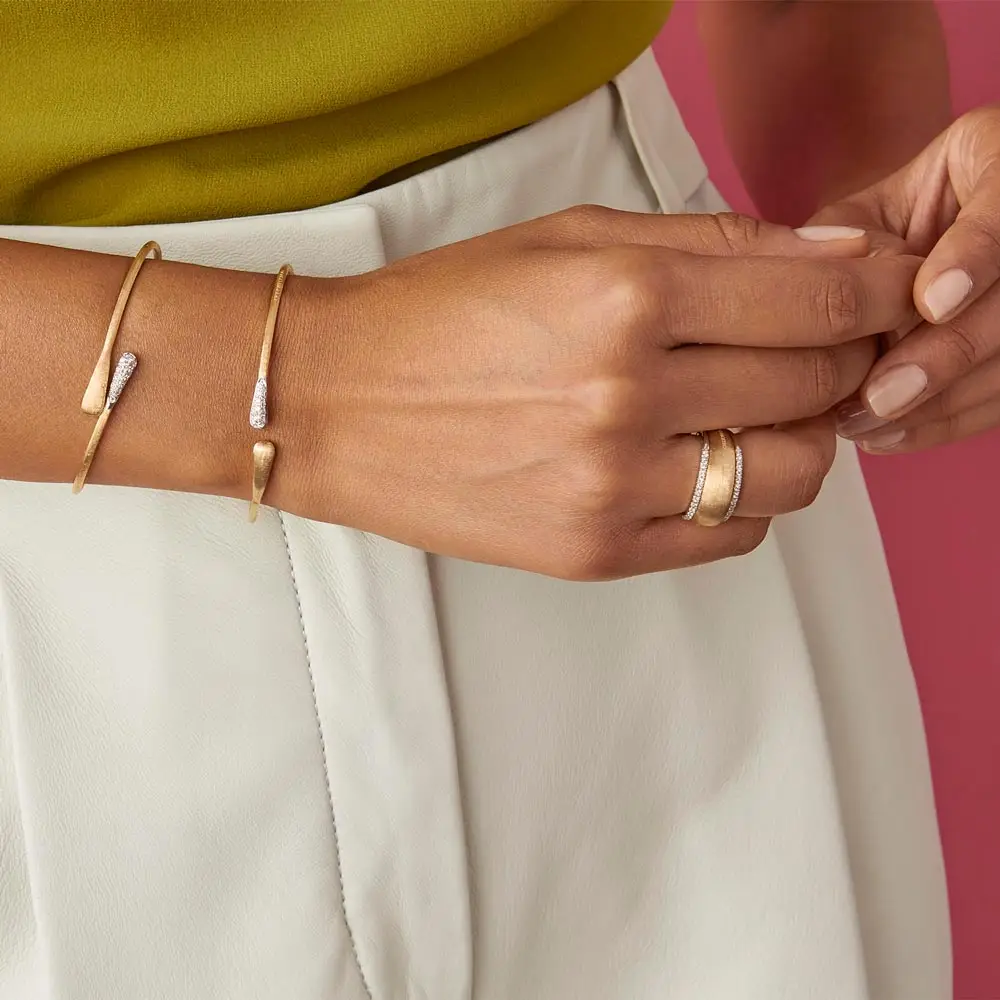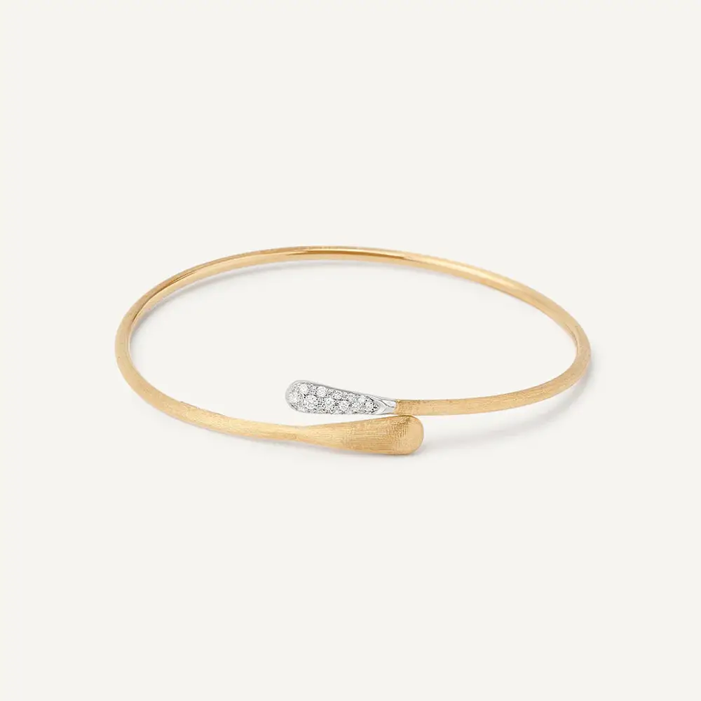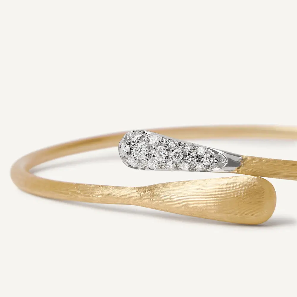 Браслет Marco Bicego Lucia SB110 B YW Q6 является выдающимся примером роскоши и ювелирного мастерства. Выполнен из жёлтого золота 18 кт (750/1000) типа «комбинированное золото» и имеет поверхность с эффектом глянца и матовости, создающую элегантный контраст. Украшен натуральными белыми бриллиантами (цвет G, чистота VS) общей массой 0,15 ct, огранка «round».