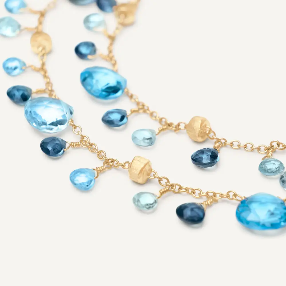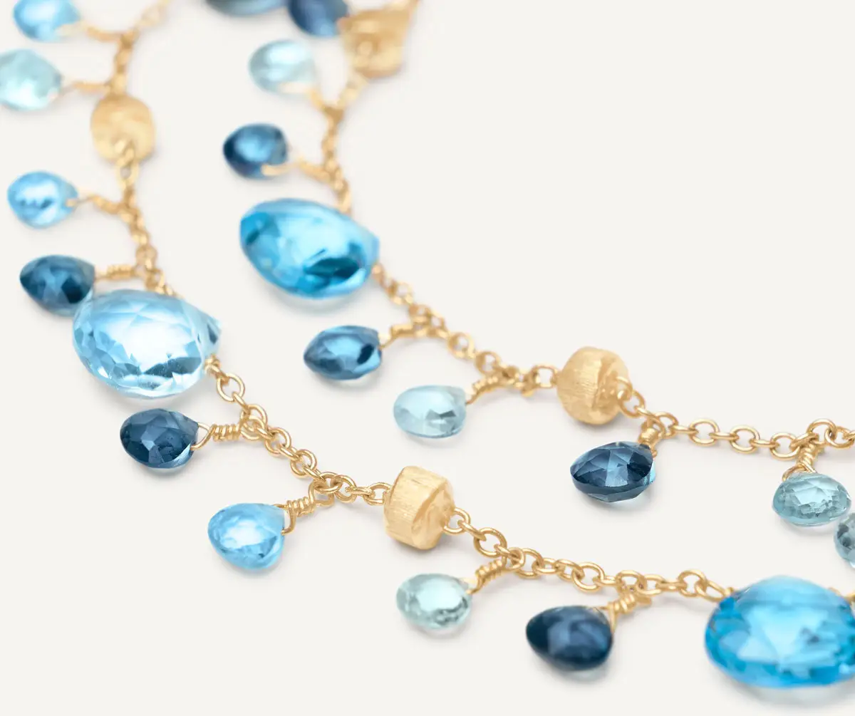 Коллекция Paradise – это праздник цвета, света и радости жизни. Marco Bicego сочетает изящные цепочки из золота 750-й пробы с яркой палитрой драгоценных камней – от турмалинов и аквамаринов до кварцев и топазов. В результате создаются украшения, наполненные игривой энергией, напоминающие солнечные морские побережья и беззаботное лето.