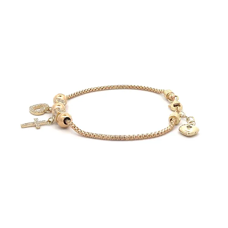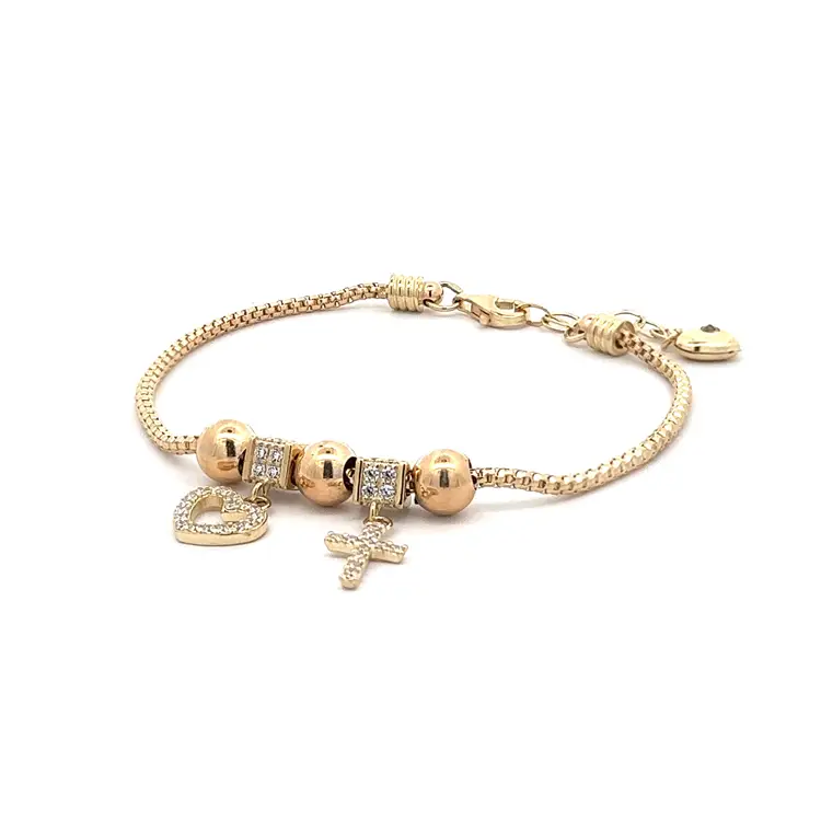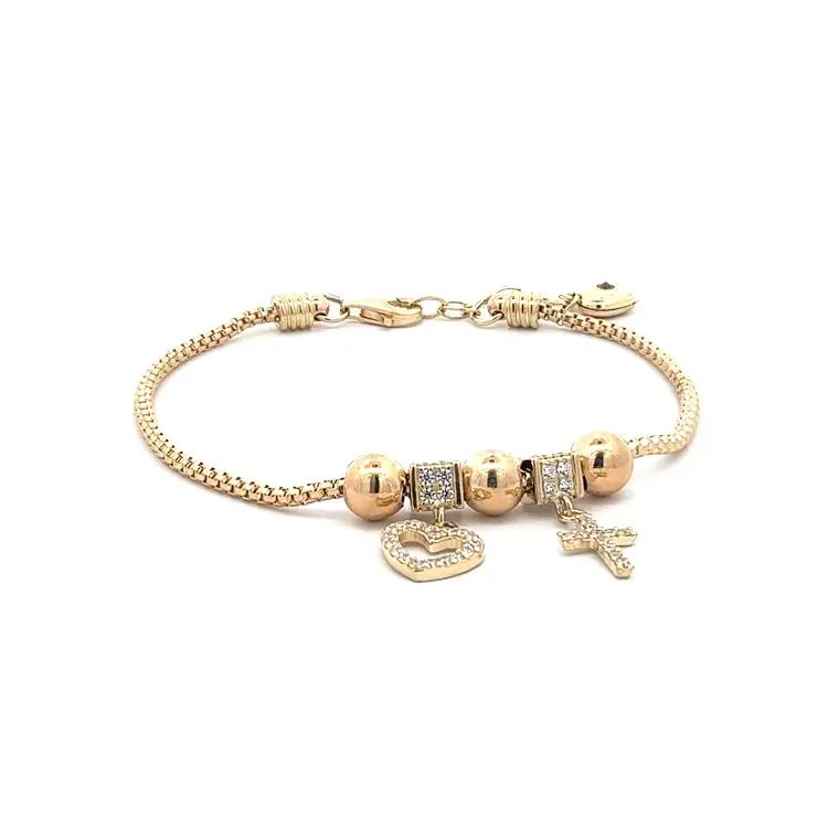 Золотой браслет с блестящими камнями и символикой любви и веры