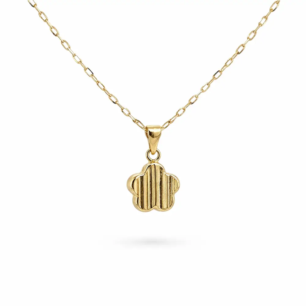 Этот золотой кулон в форме четырёхлистного клевера является изящным символом удачи, гармонии и положительной энергии. Элегантный силуэт с деликатно структурированной поверхностью придаёт украшению вневременной вид, подходящий как для повседневной носки, так и для торжественных случаев.