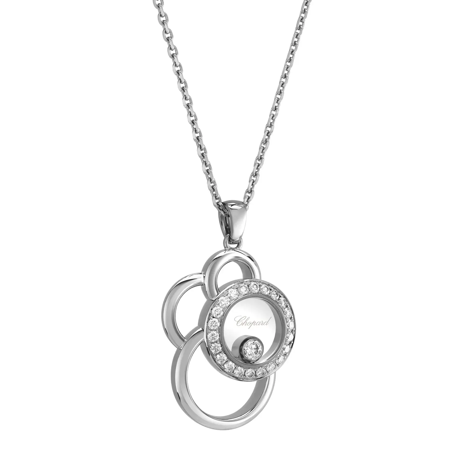 Подвеска Chopard Happy Diamonds 799888-1002 — это подлинное воплощение роскоши и минималистического ювелирного мастерства. Украшение выполнено из 18-каратного белого золота (750/1000) с идеально полированной поверхностью, придающей ему вне-временной и утончённый облик.