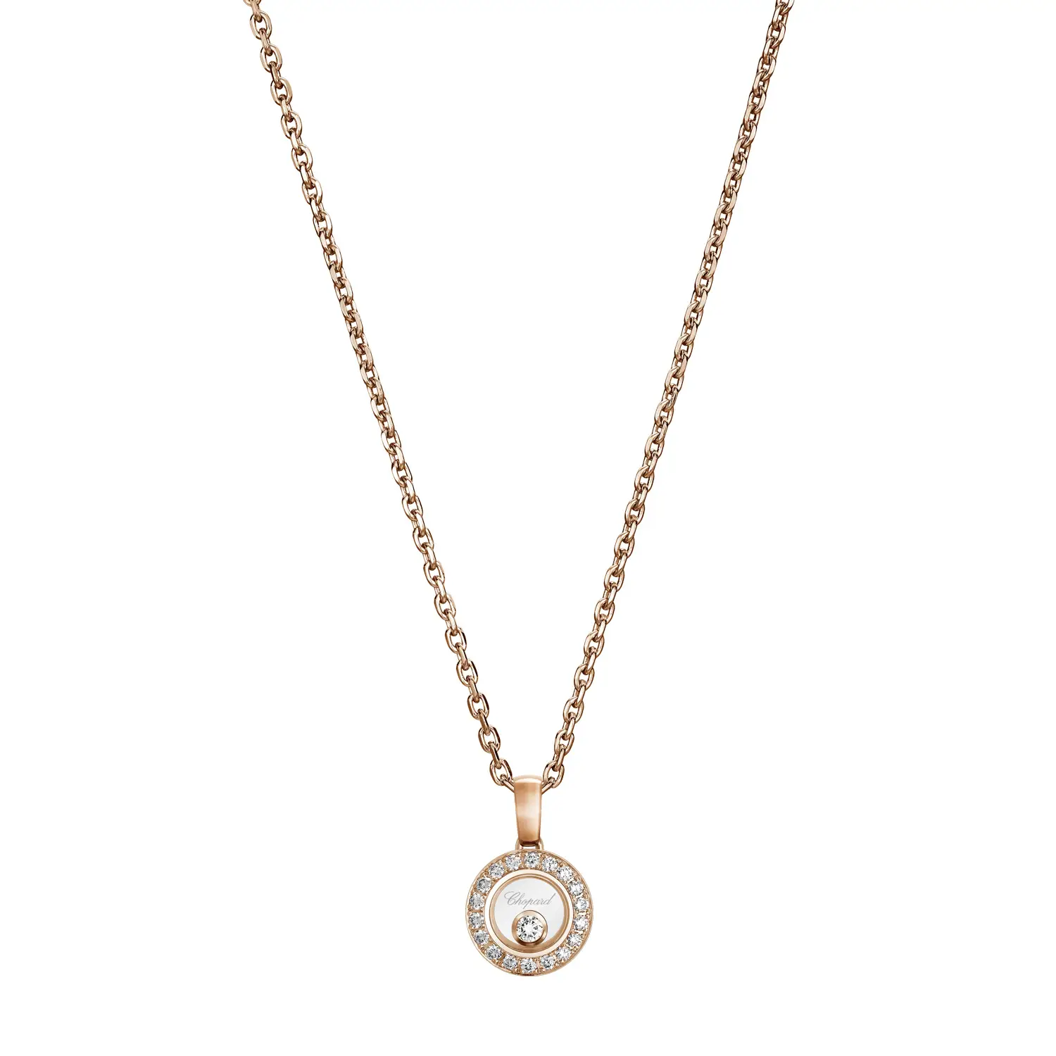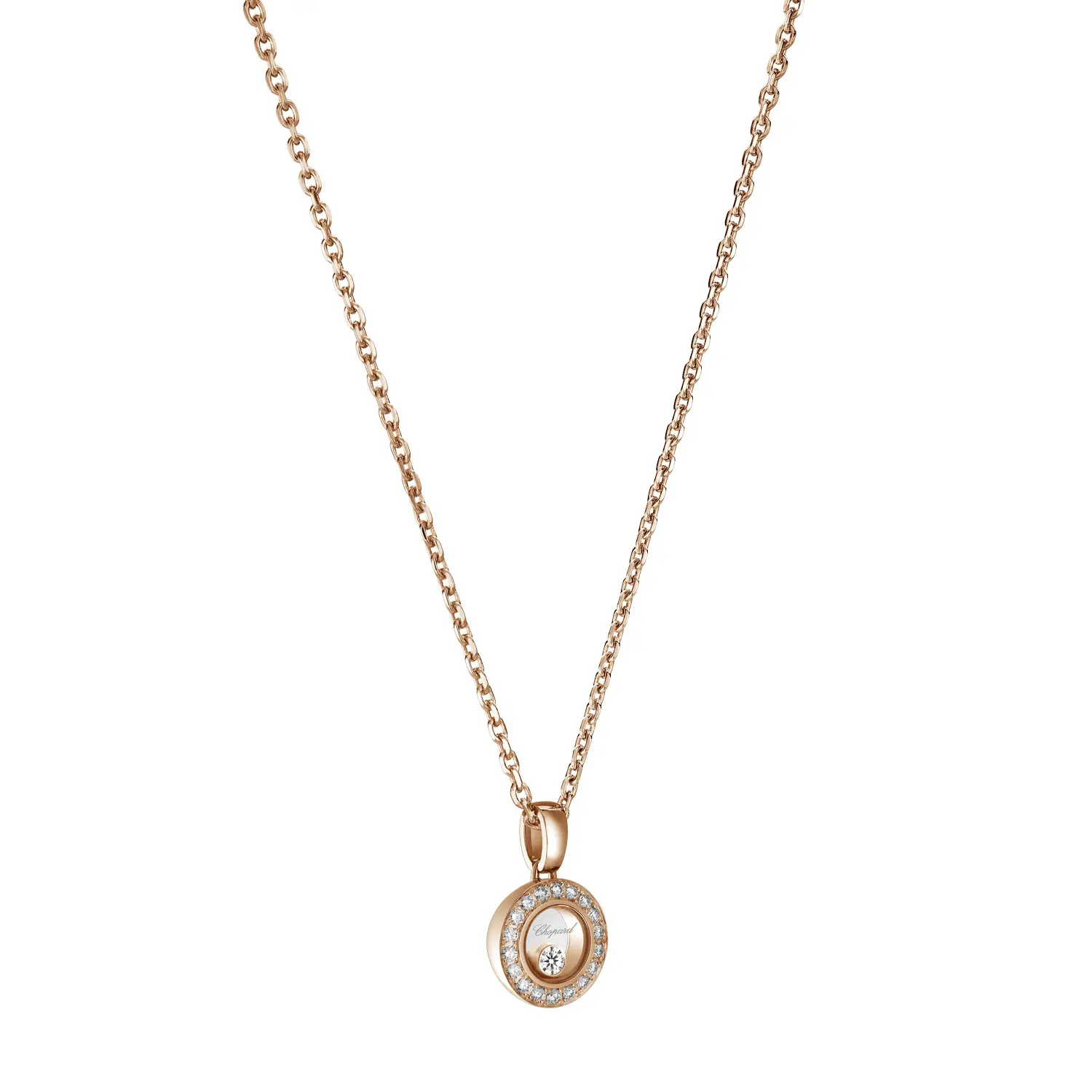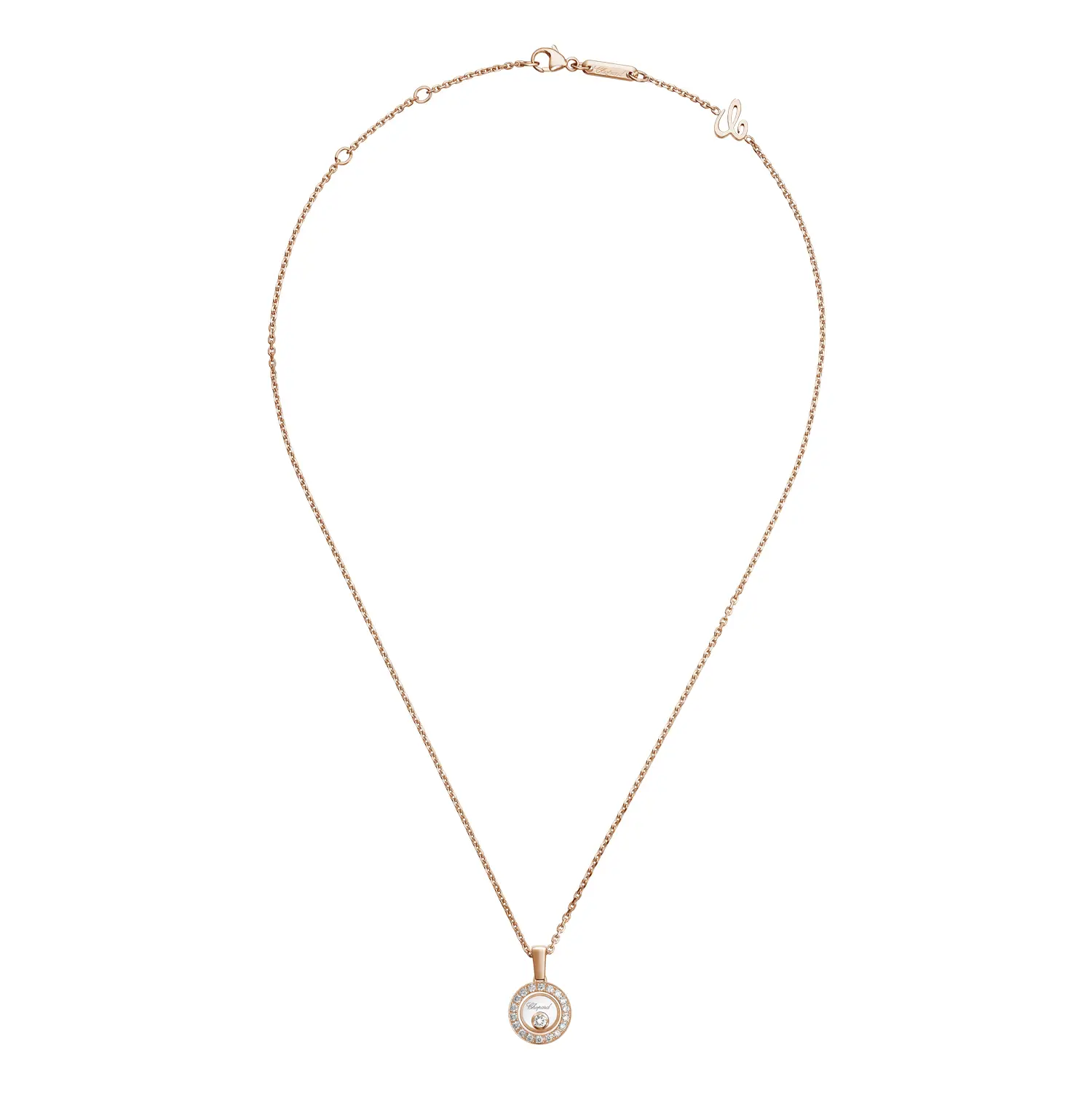 Этот утончённый кулон из коллекции Happy Diamonds Icons воплощает гармонию между игривостью и элегантностью. Изготовлен из 18-каратного розового золота, украшен свободно движущимся бриллиантом весом около 0,19 карата, помещённым между двумя сапфировыми стёклами — символом свободы и радости.
