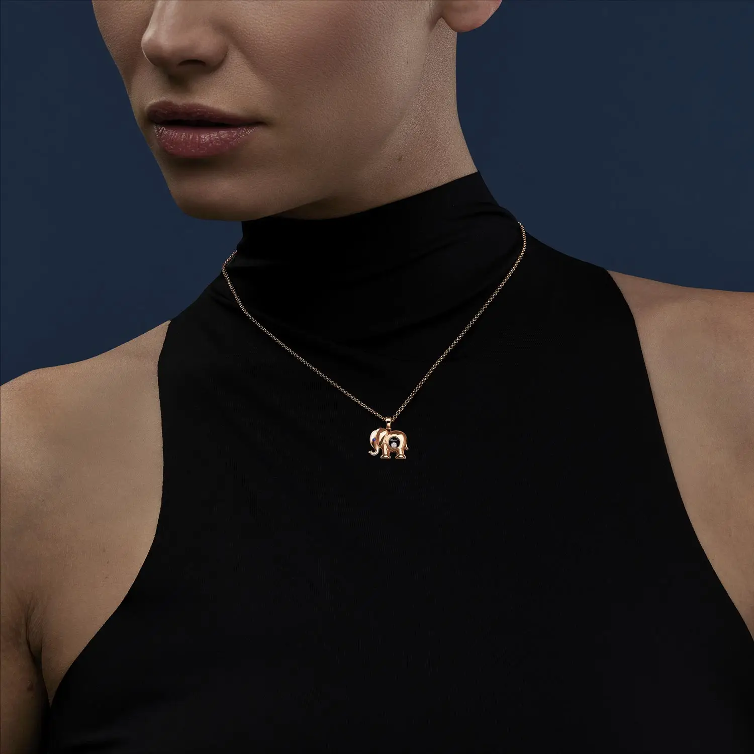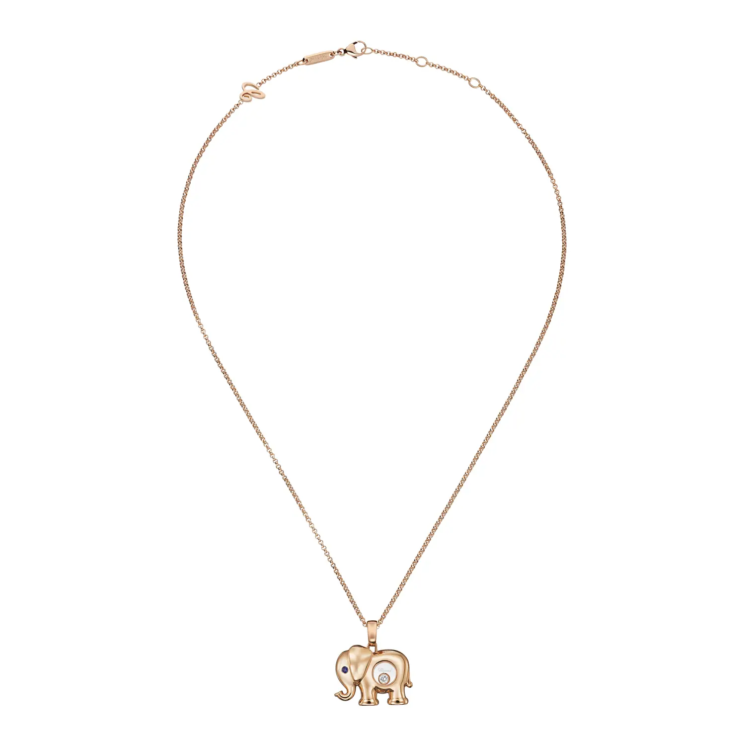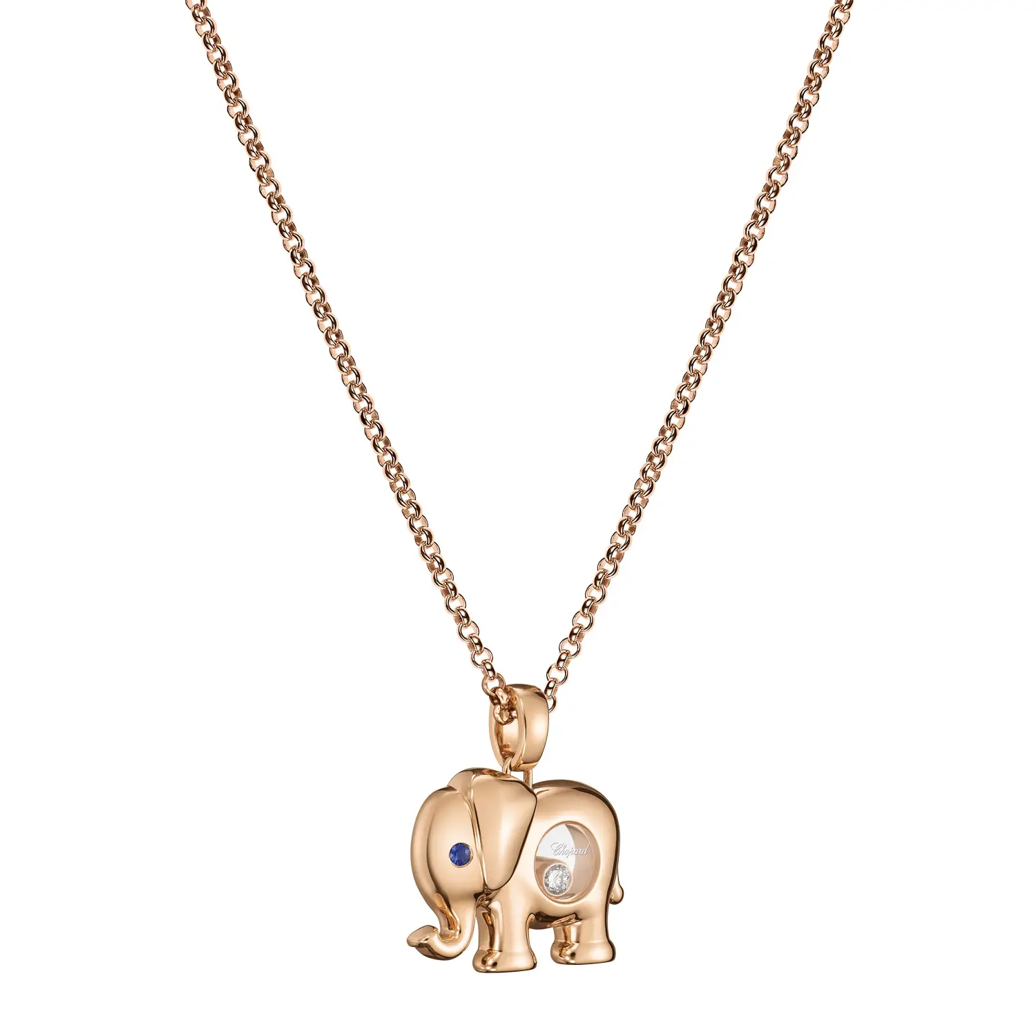 Подвеска Chopard Happy Diamonds Elephant 79A189-5001 сочетает в себе игривый художественный акцент и роскошное ювелирное мастерство. Выполненная в форме изящного слона, она изготовлена из 18-каратного розового золота (750/1000) с полированной поверхностью, излучающей утончённую элегантность.
