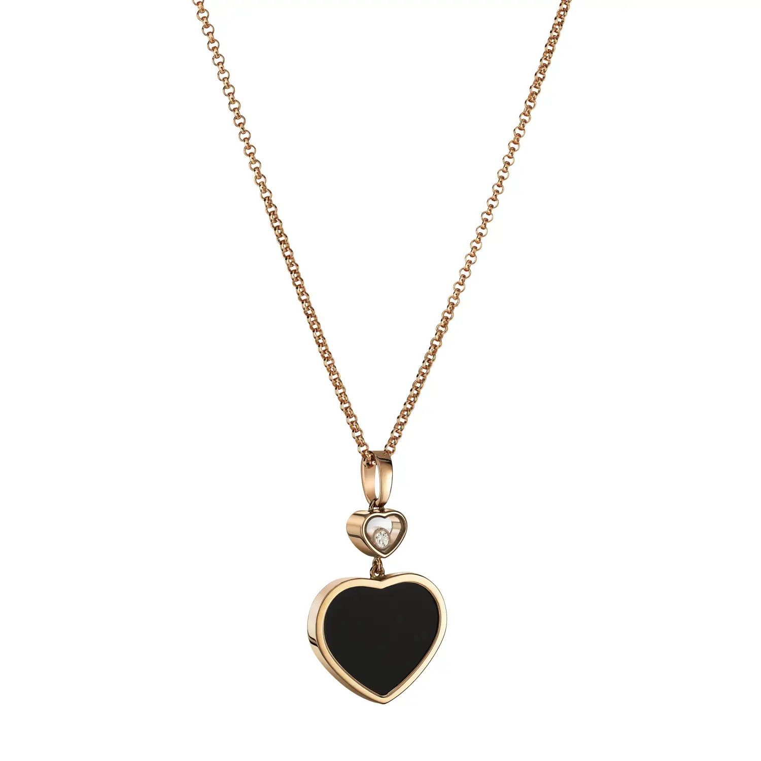 Кулон Chopard Happy Hearts 797482-5201 воплощает элегантность, чувственность и щедрость — основную идею коллекции Happy Hearts. Изготовлен из этичного розового золота 18 карат, украшен чёрным ониксом в форме сердца — символом любви и силы. Контраст между тёплым оттенком золота и глубиной камня придаёт украшению современный и утончённый характер.