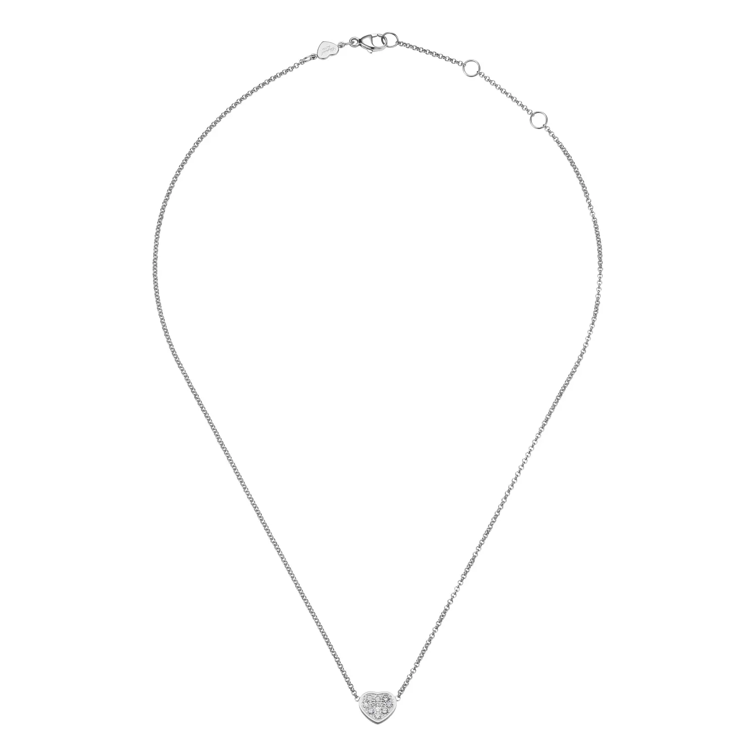 Колье Chopard My Happy Hearts 81A086-1901 излучает нежность, элегантность и вечную красоту. Изготовлено из этичного белого золота 18 карат, украшено сердцем с бриллиантами общим весом 0,12 карата, которое мягко сверкает при каждом движении. Минималистичный дизайн сочетает изящество и роскошь.
