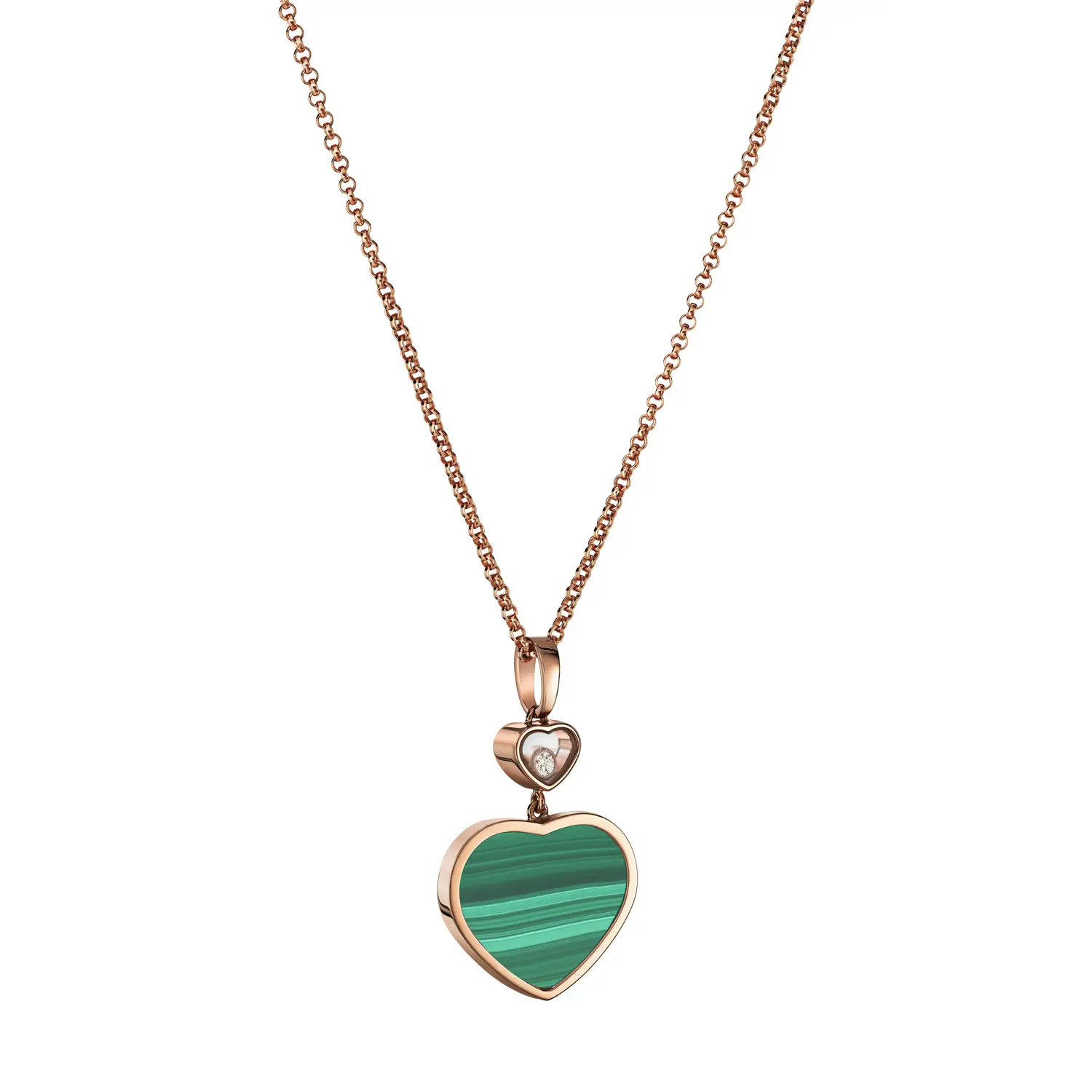 Chopard Happy Hearts 797482-5151 – это очаровательный ювелирный кулон класса люкс, который рассказывает историю об элегантности, любви и силе природных камней. Это исключительное изделие выполнено из розового золота 750 пробы (18 карат) с полированной поверхностью, подчеркивающей его тёплый оттенок и придающей неповторимое очарование.