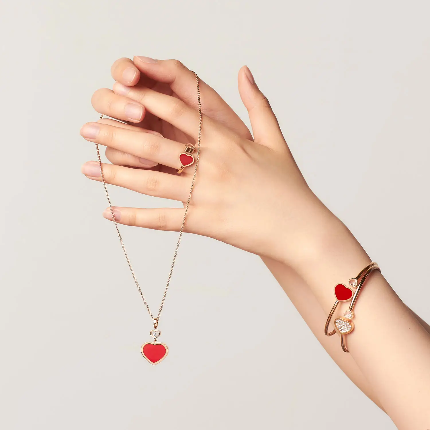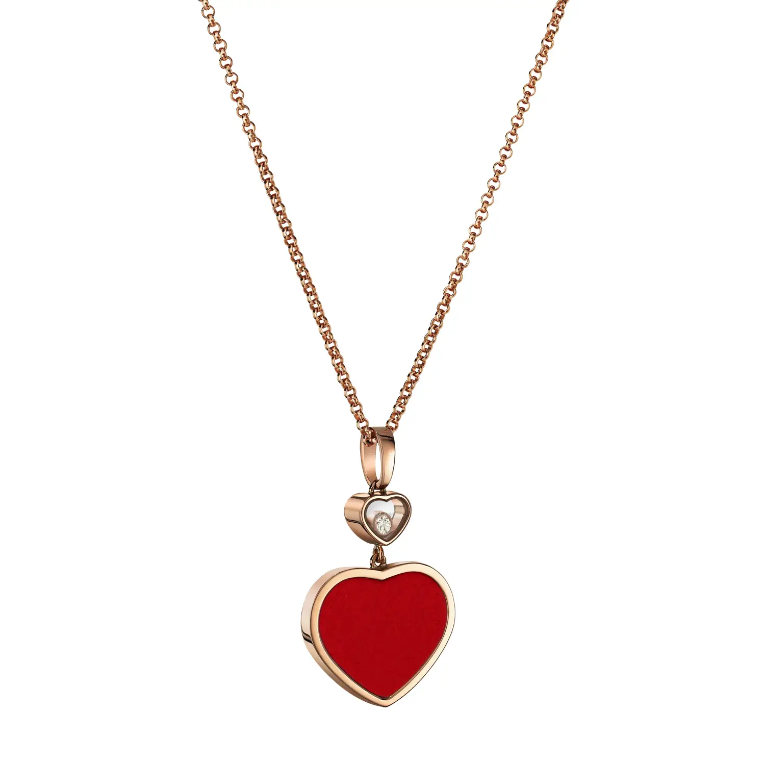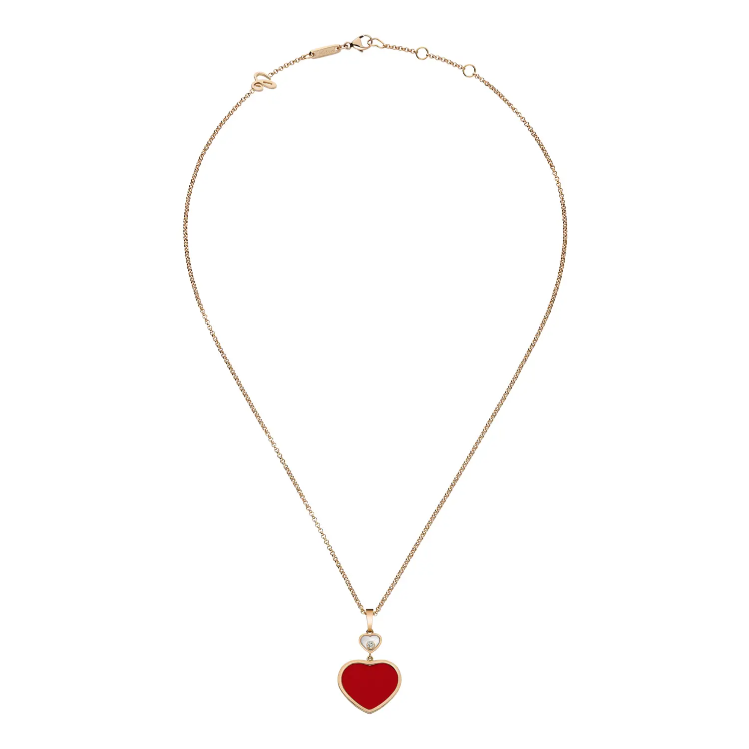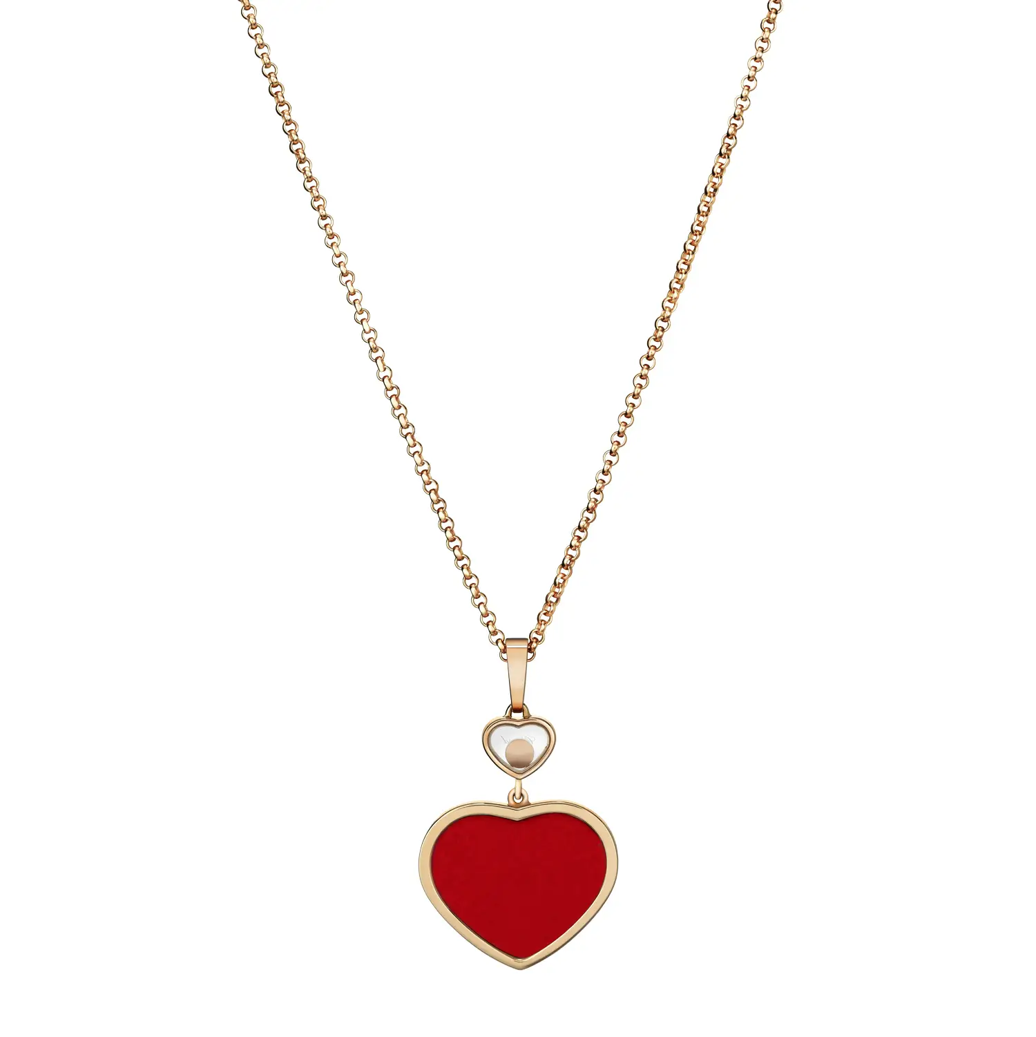 Цепочка длиной 45 см делает кулон универсальным выбором для повседневного образа и торжественных случаев. Сочетание блеска золота и сияния сердолика делает украшение символом женственности, радости и гармонии, олицетворяя дух коллекции Chopard Happy Hearts.