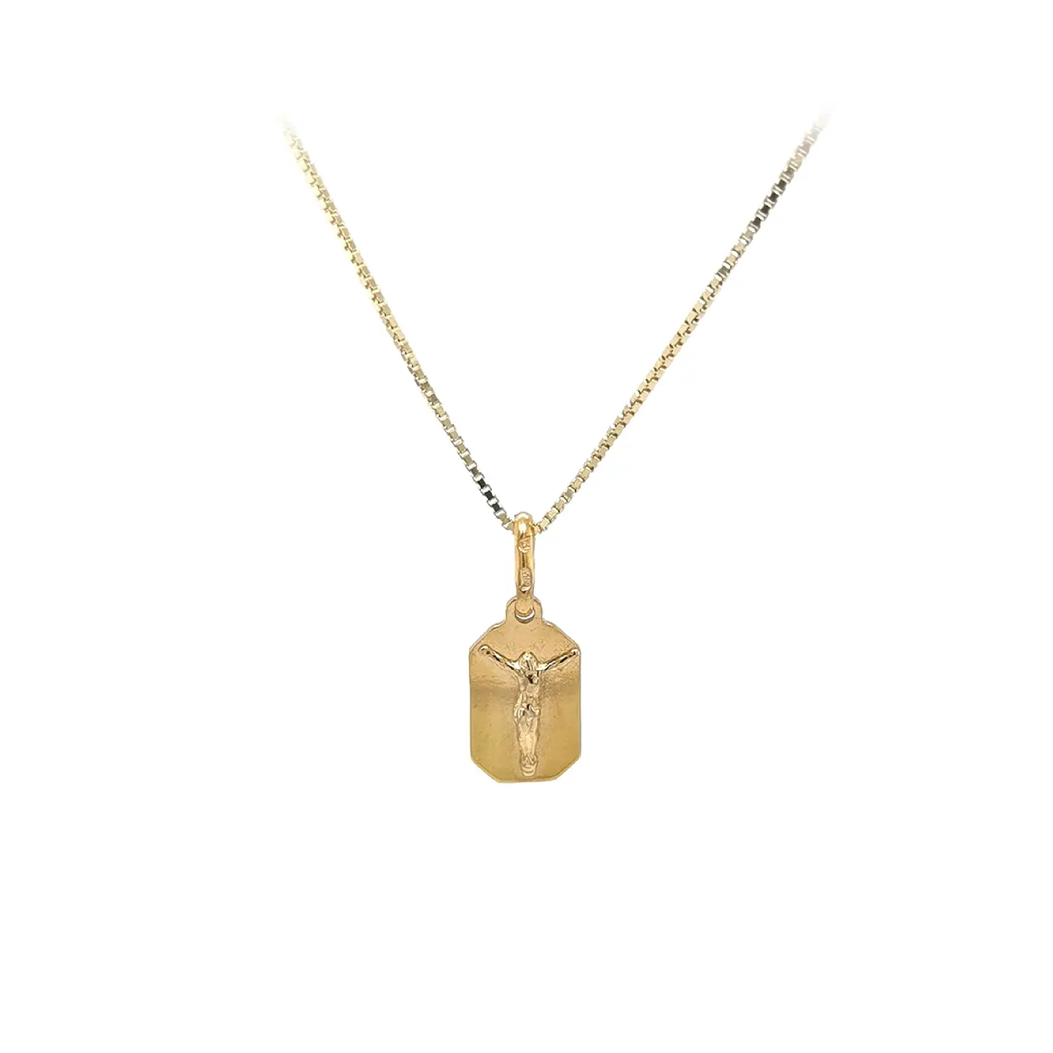Этот золотой кулон с образом Иисуса Христа является выразительным символом веры, защиты и духовной силы. Тщательно выполненный рельеф фигуры Христа на деликатно текстурированном фоне придаёт украшению благородный и вневременной характер.