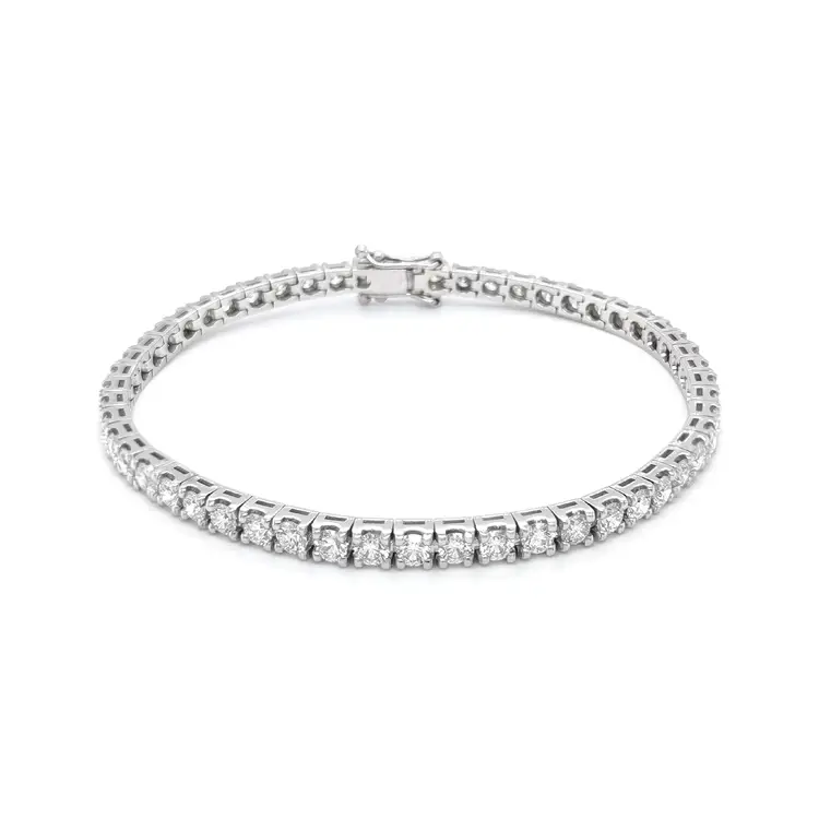 Браслет украшен 52 природными бриллиантами круглой огранки общим весом 5,41 карата. Каждый камень диаметром 2,50 мм обладает цветом G и чистотой VS, что гарантирует исключительную прозрачность и блеск. Белое золото усиливает игру света, превращая украшение в непрерывную ленту сияния.