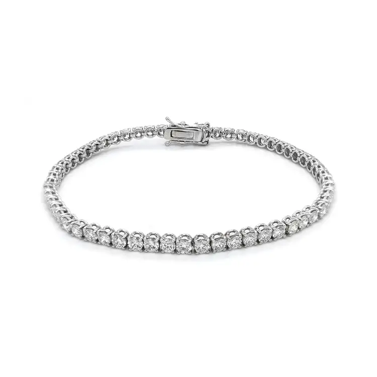 Браслет украшен 58 природными бриллиантами круглой огранки диаметром 3,20 мм. Камни цвета G и чистоты VS сверкают кристальной прозрачностью и живым блеском. Белое золото подчёркивает их природное сияние, превращая каждый жест в утончённый акцент.
