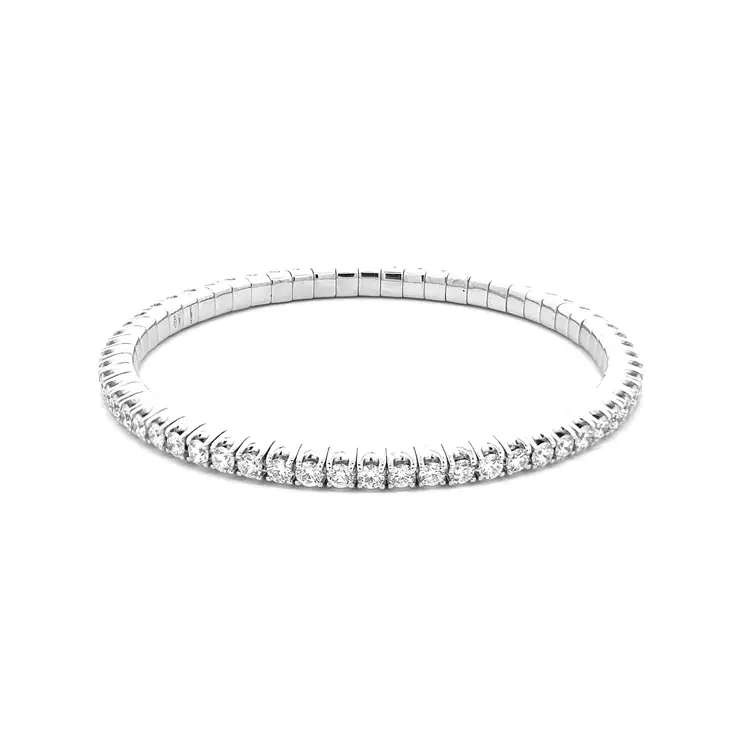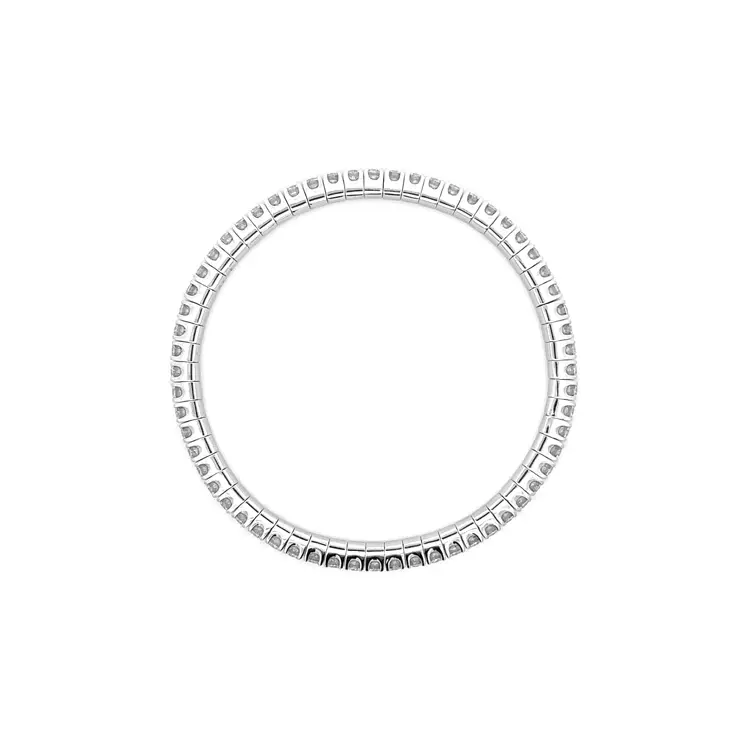 При ширине 3,80 мм и высоте 4,30 мм браслет сочетает лёгкость и присутствие. Каждый бриллиант диаметром 2,80 мм, цвета G и чистоты VS, отражает свет с поразительной глубиной. Регулируемая длина 18–22 см обеспечивает идеальную посадку и комфорт, делая украшение универсальным для любого случая.