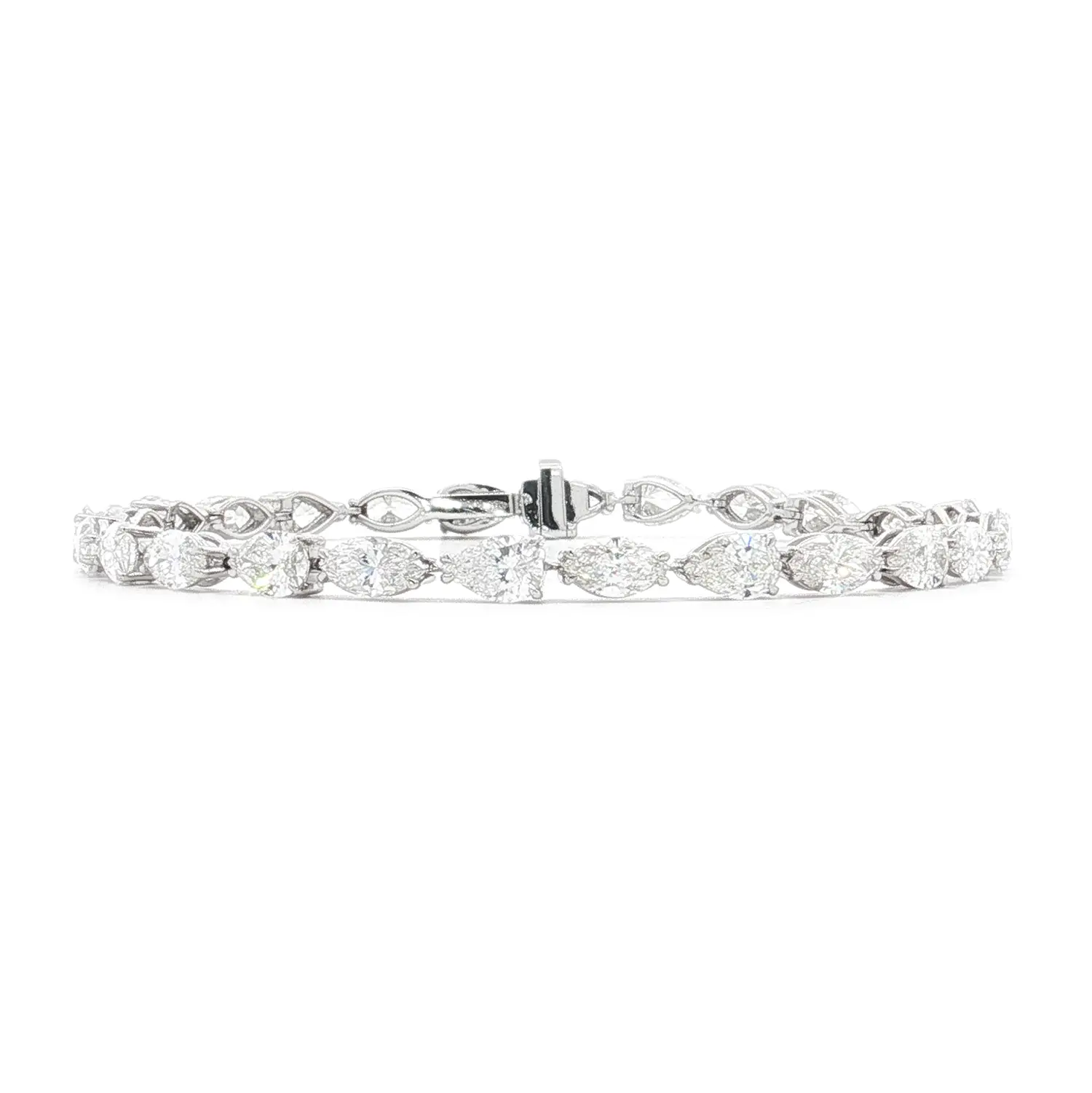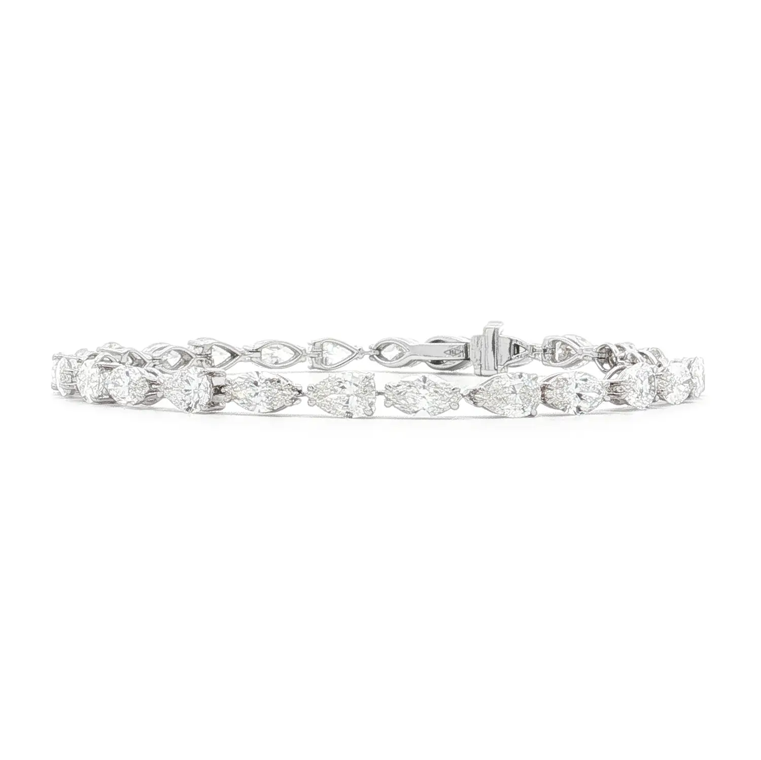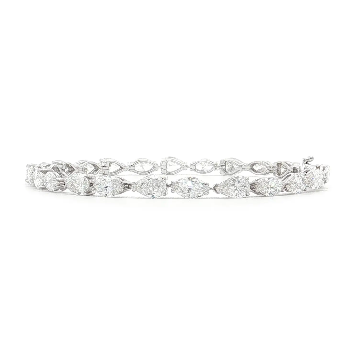 Украшение инкрустировано 26 природными белыми бриллиантами: 13 камней формы “груша” (весом 4,42 ct) и 13 камней формы “маркиза” (весом 4,27 ct). Каждый бриллиант обладает цветом G и чистотой VS, что обеспечивает исключительное сияние и глубину.